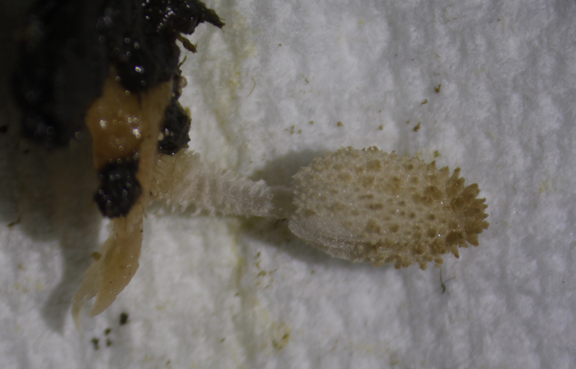 Makroskopisch (die jungen Fruchtkörper) erinnern sie sehr stark an Coprinopsis cordispora und auch mikroskopisch würde ich sagen, dass er es sein müsste. Allerdings - so wie ich auch hier im Forum gelesen habe - ist die Unterscheidung zu Coprinopsis patouillardi wohl noch nicht so ganz geklärt. Bei Kommentaren von Nobi und Andreas Melzer konnte ich lesen, dass sie Fruchtkörper auf Dung als C. cordispora und auf Mistgemischen als C. patouillardi bezeichen. Gilt diese Unterscheidung noch? Oder gibt es mittlerweile neue Erkenntnisse zu dem "Aggregat" (es gehört wohl zumindest noch eine andere Art dazu).