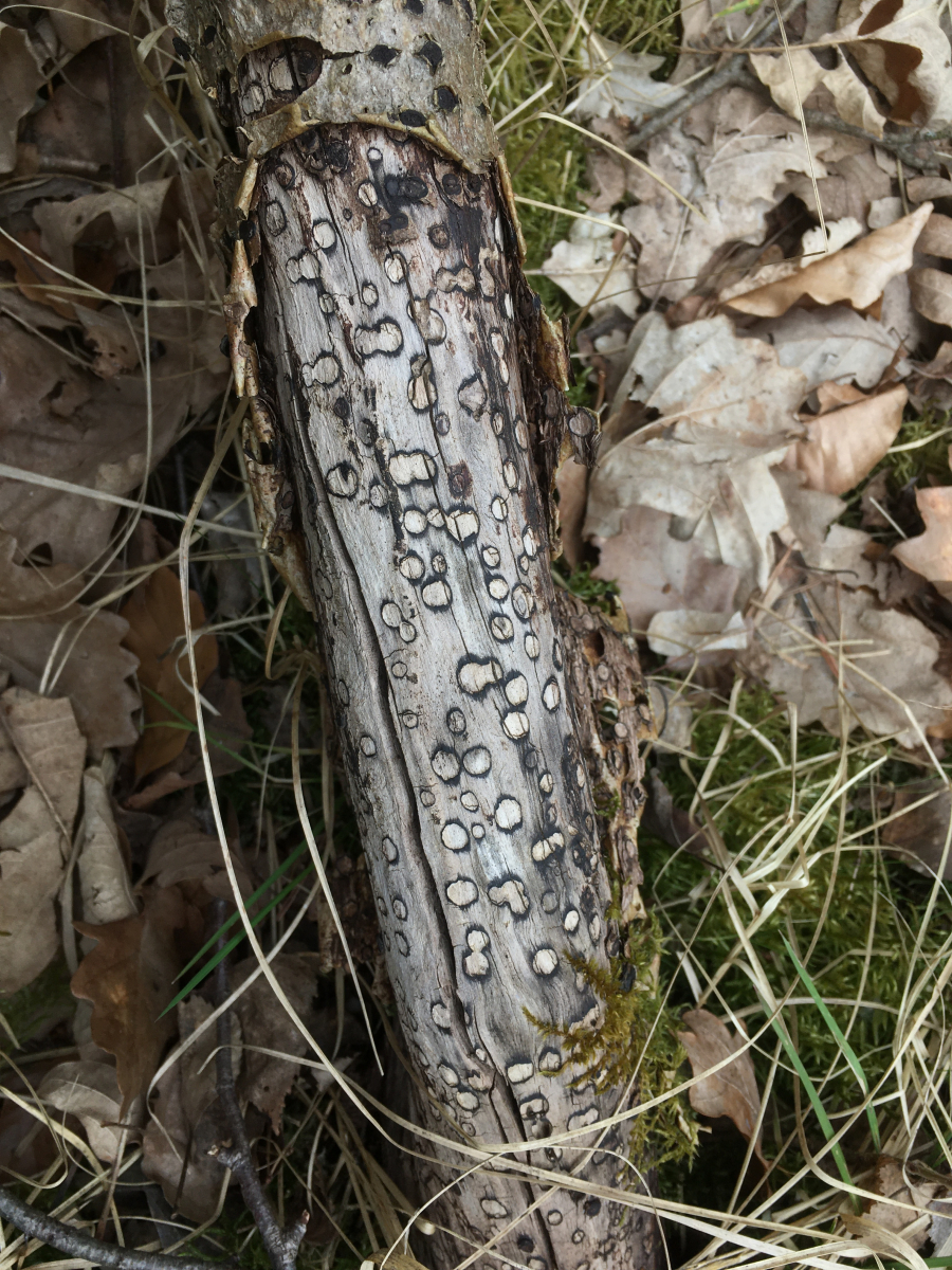 in der Nähe lag auch dieses "Leoparden"holz bedingt von einem Pyrenomyceten bei dem ich wegen starker Verwitterung keinen Bestimmungsversuch mehr unternahm.