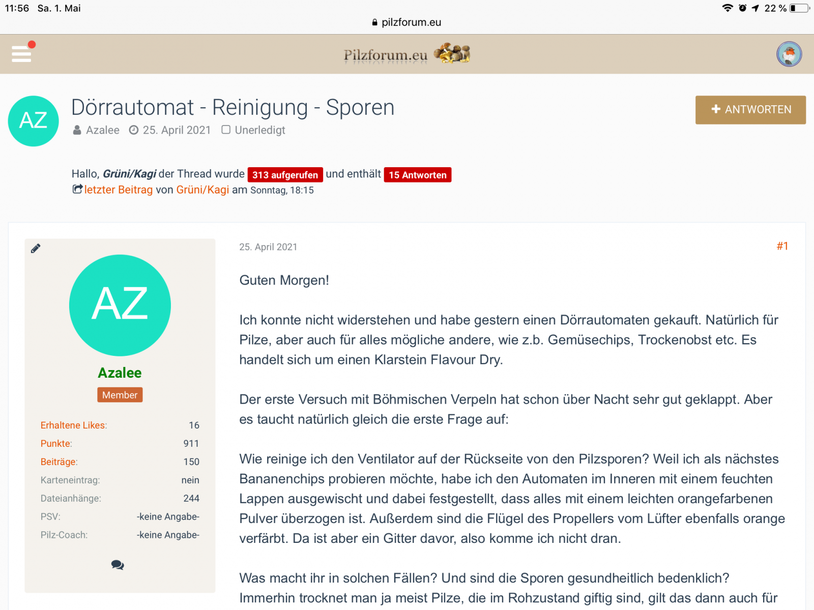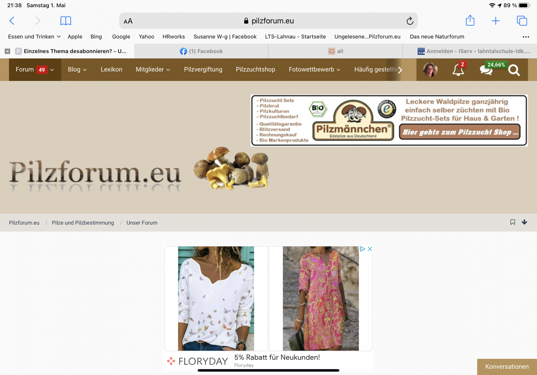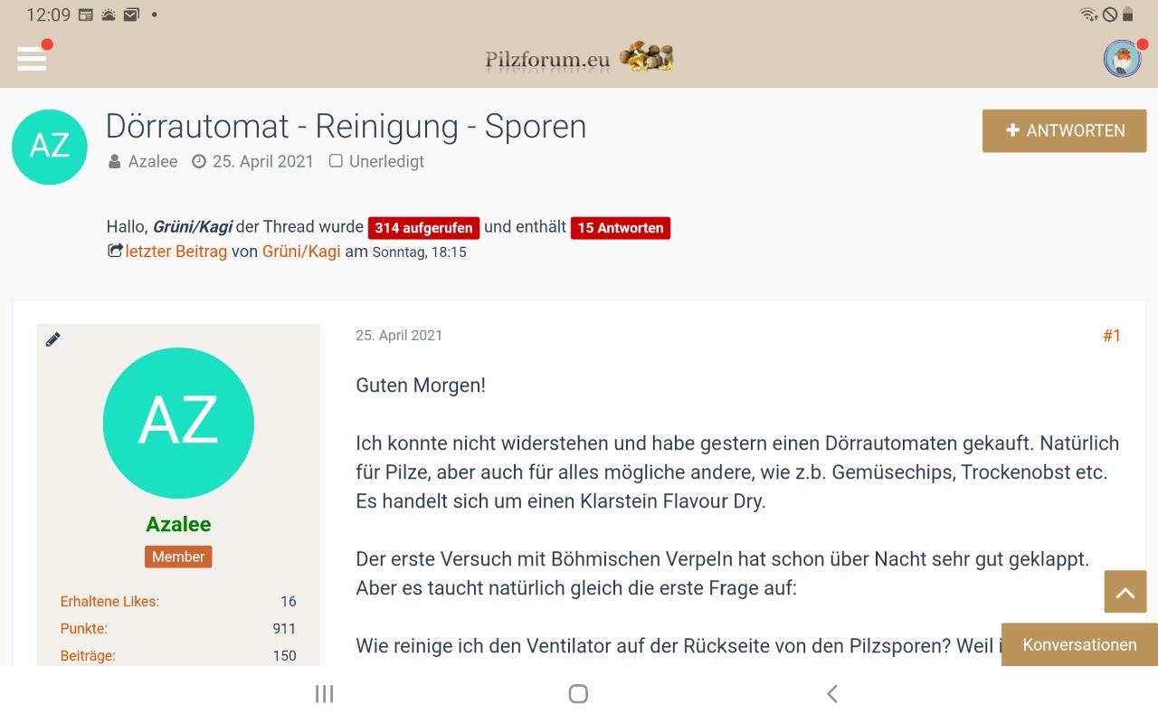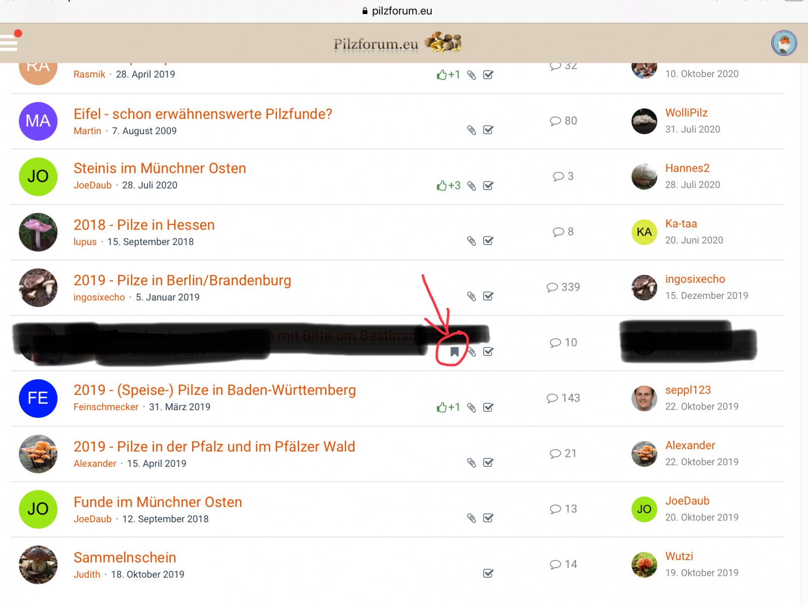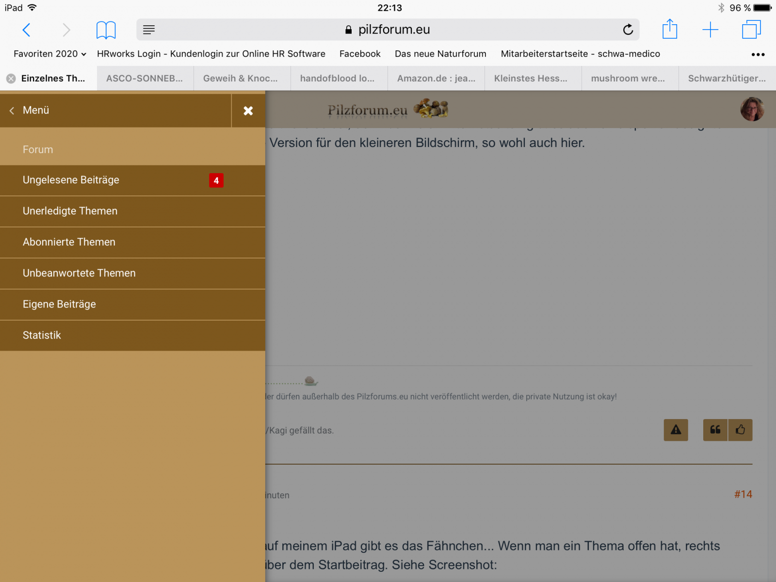 • Da ist nicht nur das Fähnchen, das ist komplett anders (also eher so wie die Darstellung auf dem großen Rechner), weil du ein neues ipad hast. Das fängt schon bei der Darstellung der Titelseite des Pilzforums an. Es wird auf deinem alten ipad sicherlich so aussehen wie auf meinem (siehe Foto oben).