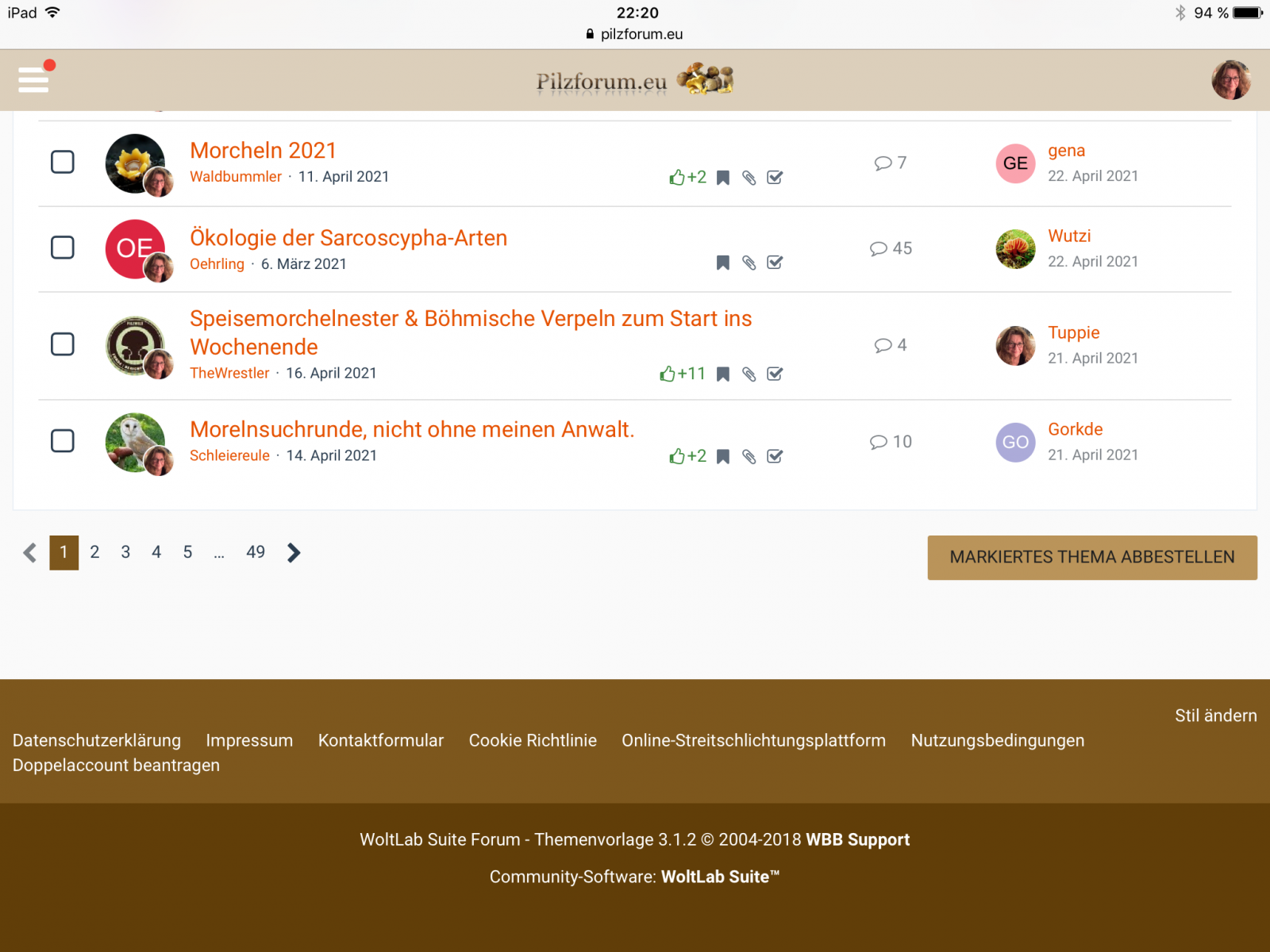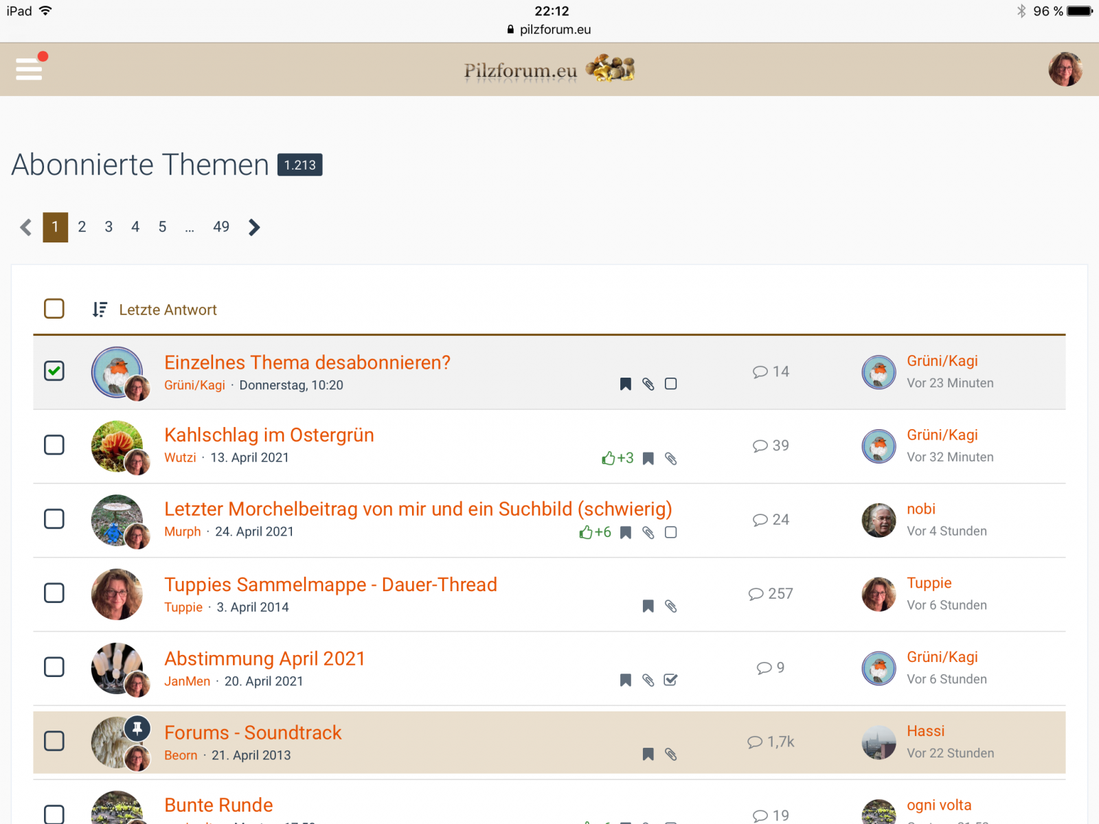 Wie du oben in meinem zweiten Beitrag siehst, geht das zwar auch in der allgemeinen Themenliste, aber da muß man ja ewig nach seinen abonnierten Themen suchen.