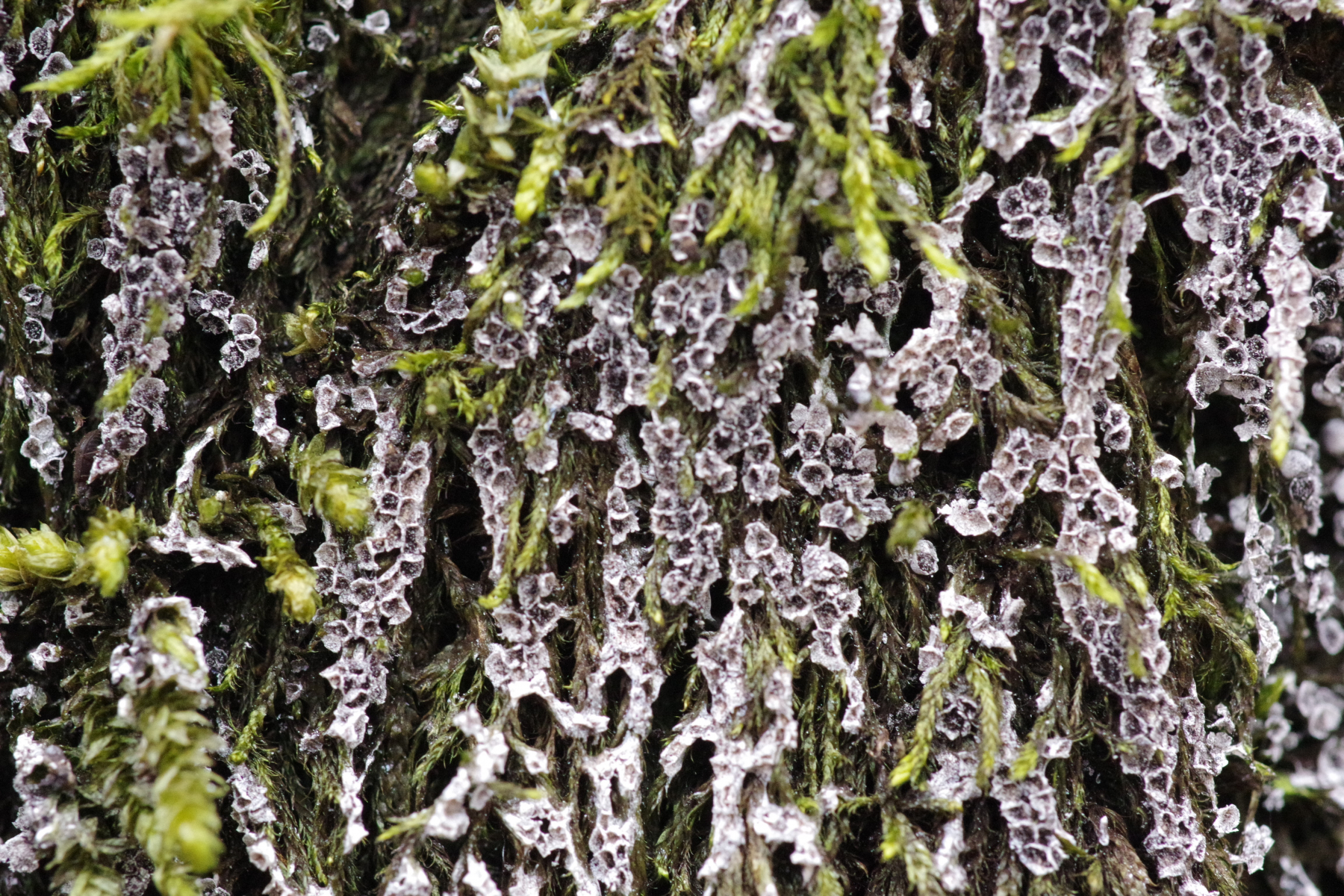 Die Nr. 2 sieht nach einer alten, schon ausgestäubten Badhamia utricularis aus, da die Fruchtkörper so am Moos herunterhängend wuchsen. Aber es könnte auch eine ander Badhamia sein. Auf Moos wachsen noch andere Arten.