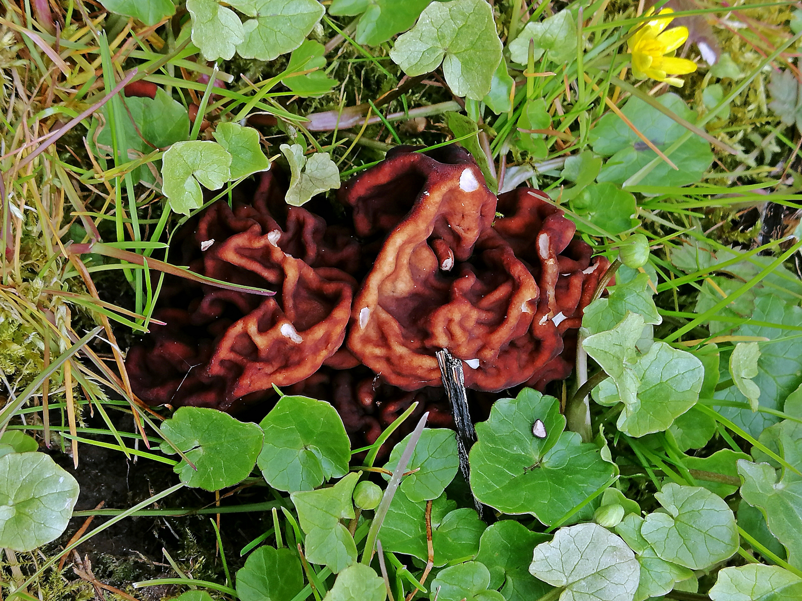 ich melde mich mal wieder nach langer Zeit mit einem Beitrag zu Frühlingsfunden. Zuerst Funde von Gyromitra esculenta oder einer Art aus diesem Agregat auf einem sehr untypischen Standort. Es handelt sich um eine Wiese mit schwarzer Erde und bewachsen mit Pestwurz und Scharbockskraut. An Bäumen und Sträuchern stehen da Erlen und Holunder. Seit einigen Jahren finde ich da immer diese Lorcheln und keine Morcheln.