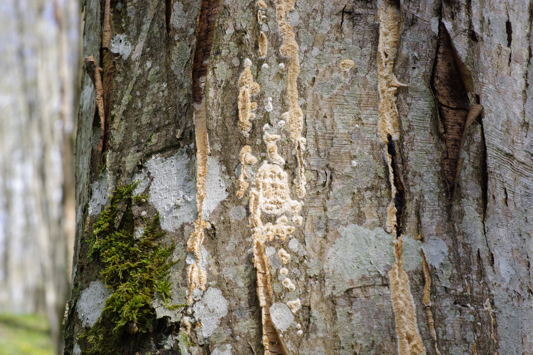 6) Eine Ganoderma cf. applanatum an Esche mit unterseits fremdem Pilzbelag