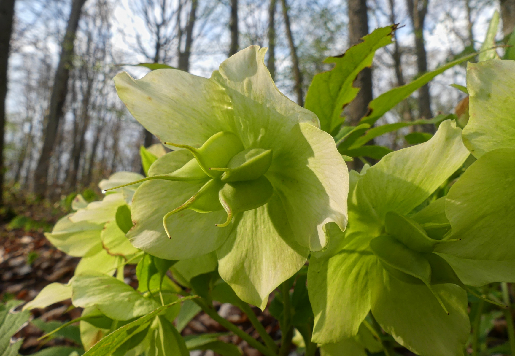 Und direkt daneben Hybrid-Nieswurzen (Helleborus x hybridus). Ich finde die ja auch nach der Blüte wunderschön.