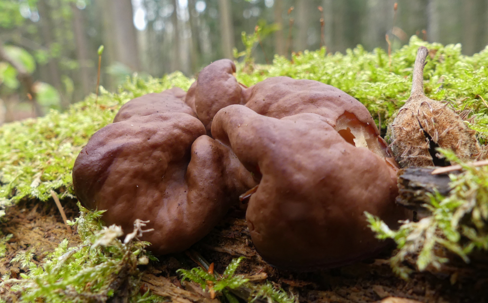 Und dann der Hammer! Finde ich doch tatsächlich Kronenbecherlinge (Sarcosphaera coronaria)