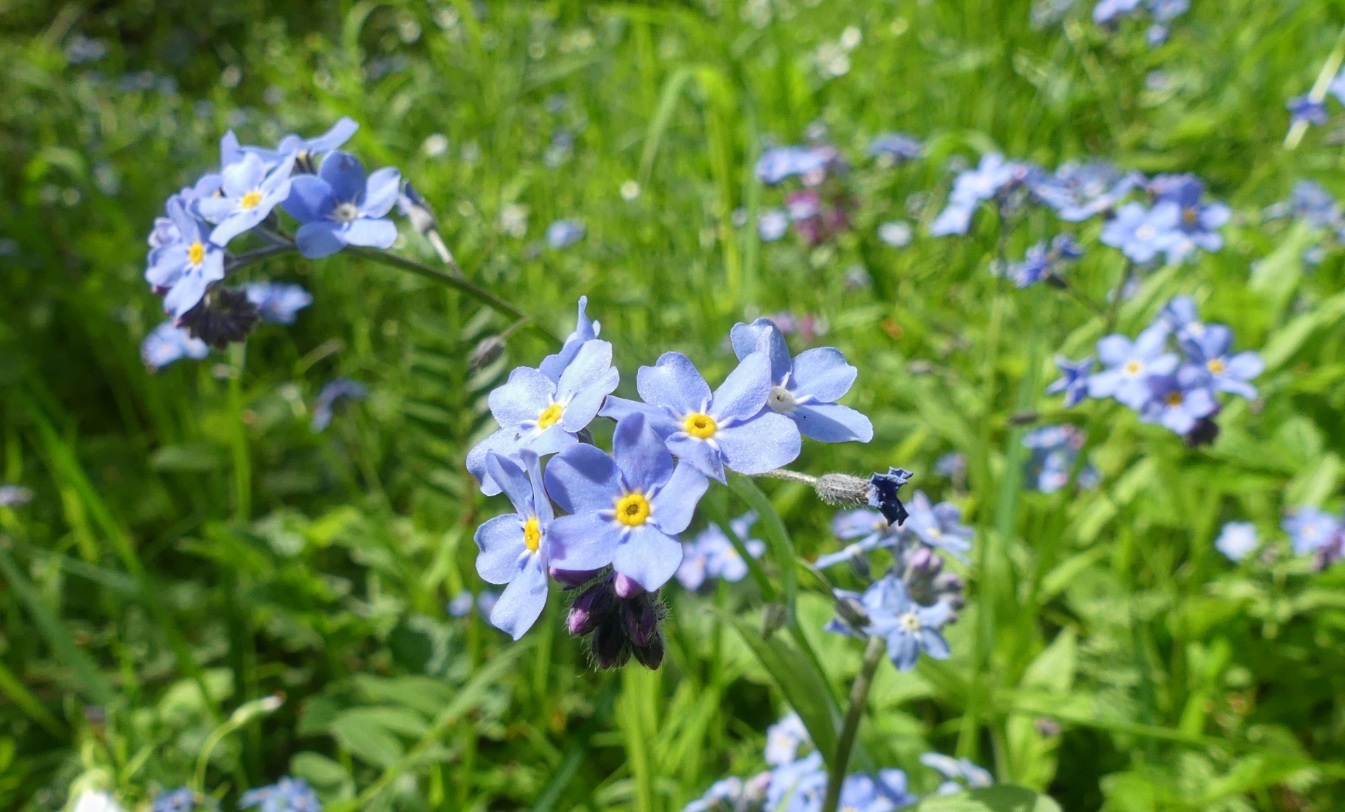 Zu den gelben und weißen Farben auf den Hängen kommt nun auch viel Blau dazu. Gamander-Ehrenpreis (Veronica chamaedrys)