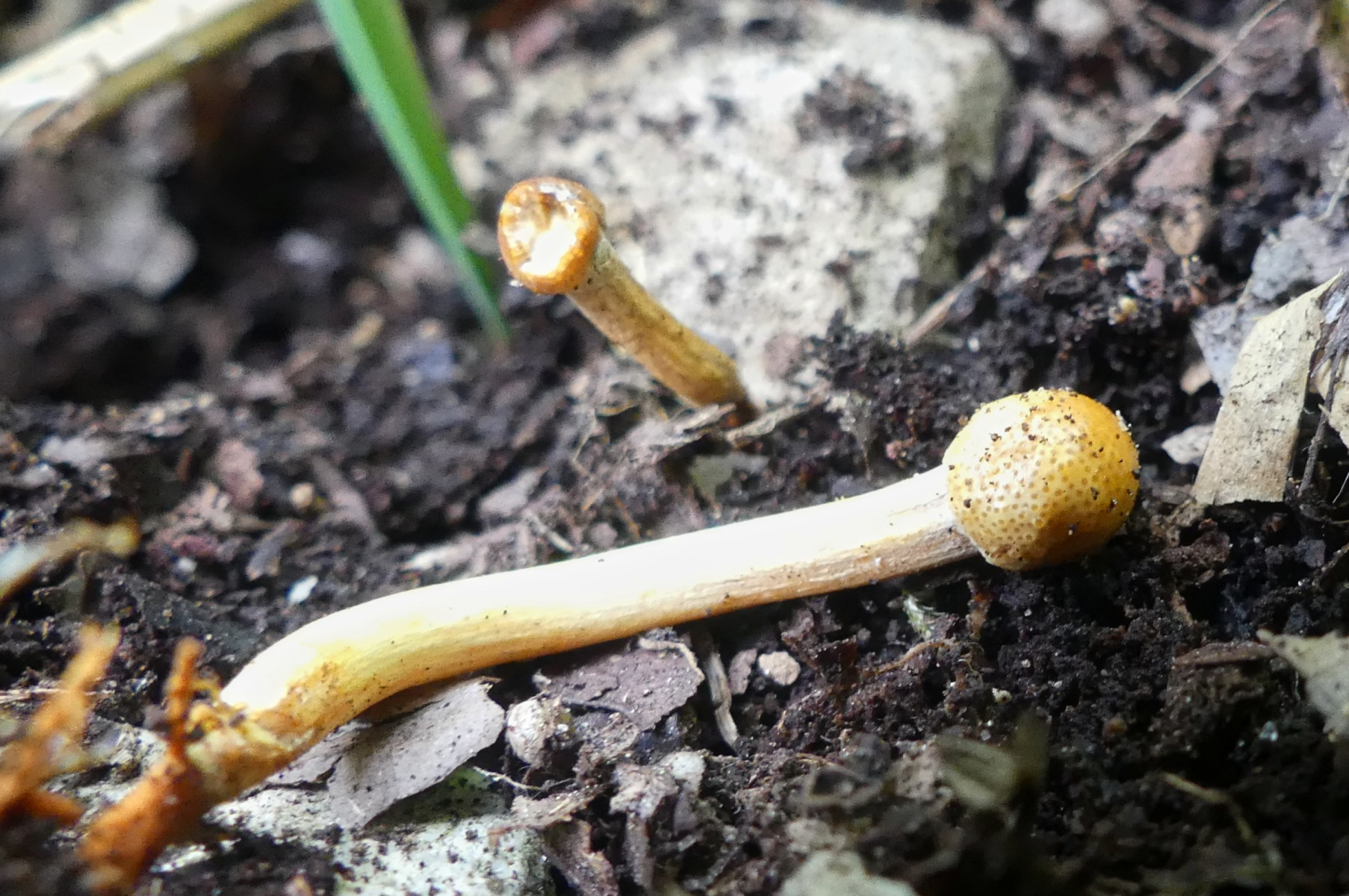 Langstieliges Samthäubchen (Conocybe subpubescens) wie mir Peter nach dem Blick durchs scharfe Glas mitteilte.
