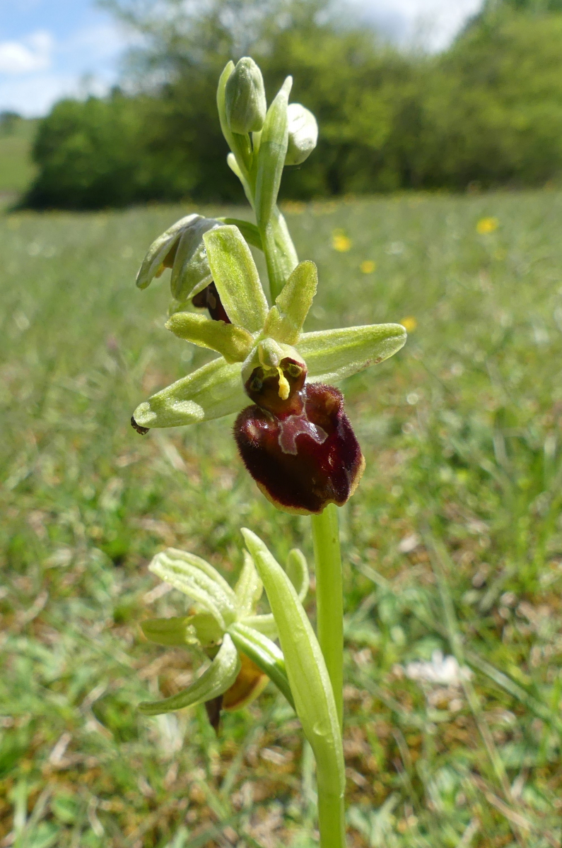 Die Fliegen-Ragwurz (Ophrys insectifera) fängt an zu blühen.