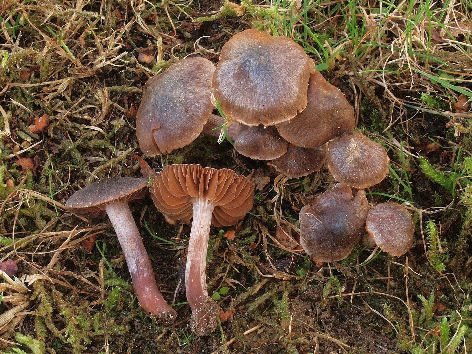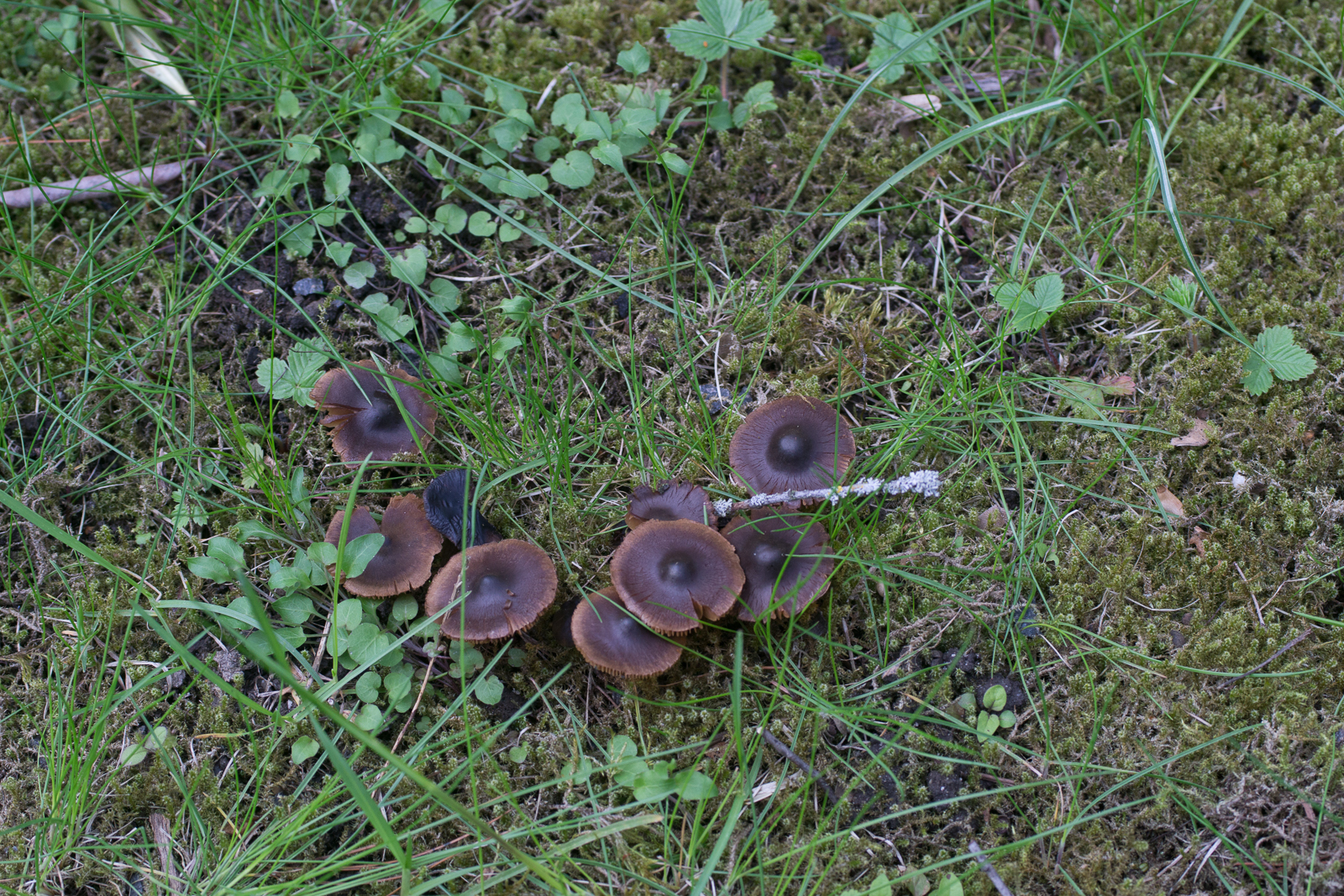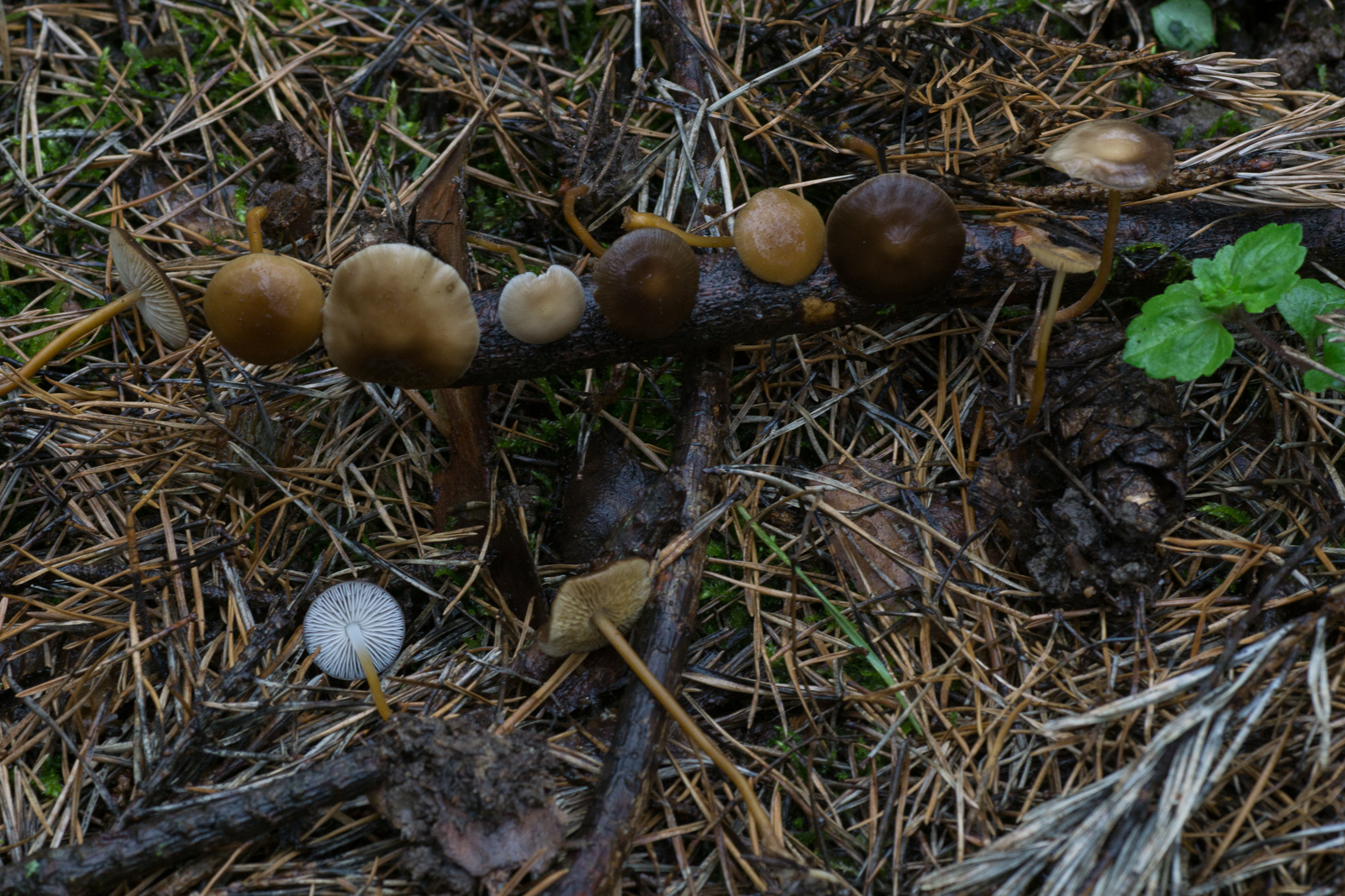 7. Hygrophane, clitocyboide Pilze im Moos unter Kiefern mit angenehm süßlichem (aber nicht so richtig Anis) Geruch. Clitocybe cf. fragrans wäre meine Hypothese.