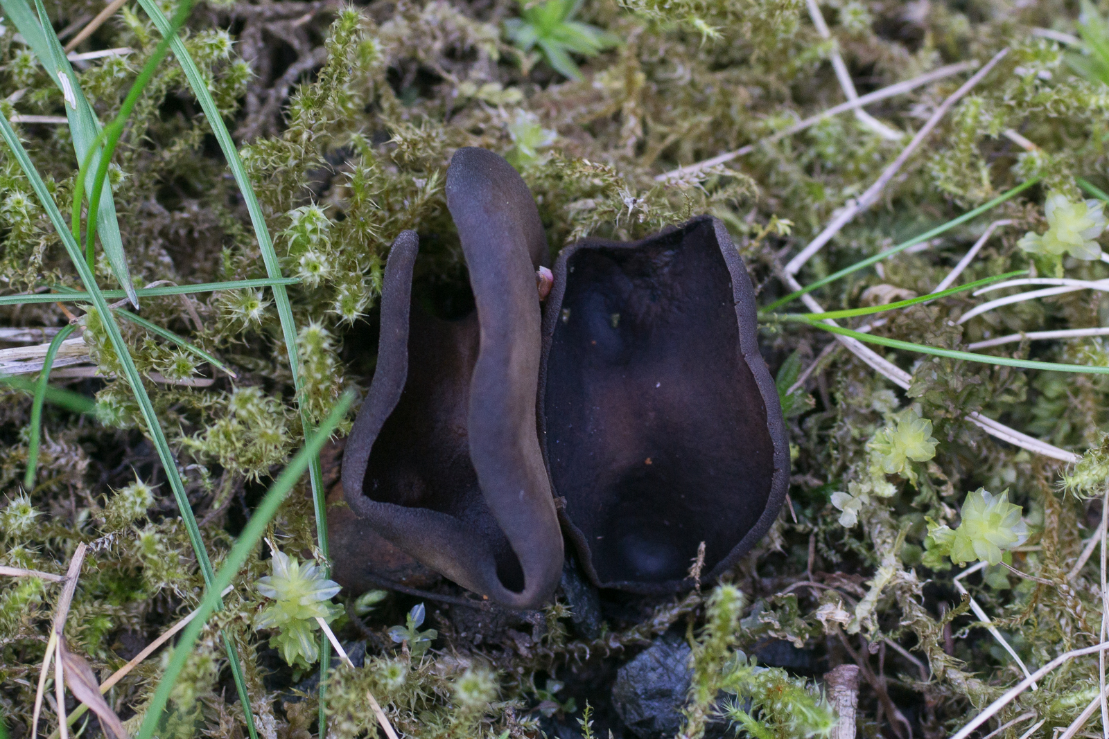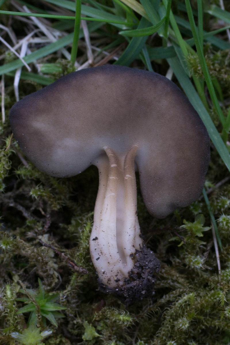 Die hier würde ich ganz gerne H. solitaria nennen. Helvella confusa soll noch ähnlich sein, aber bei Fichte und Fichte kann ich vor Ort immerhin ausschließen.