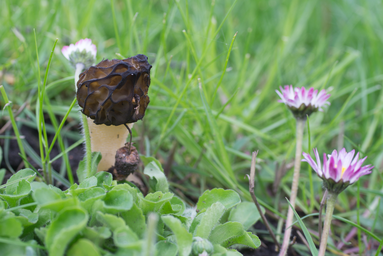 4. Erstfund für mich. Neben Spitz- und Speisemorcheln fehlte mir die Halbfreie noch. Weit und breit keine "Zeigerpflanzen" vor Ort. Eschen auch nicht. Meine schlaue Pflanzenbestimmungsapp meinte der Baum unter dem sie standen sei eine Mehlbeere.