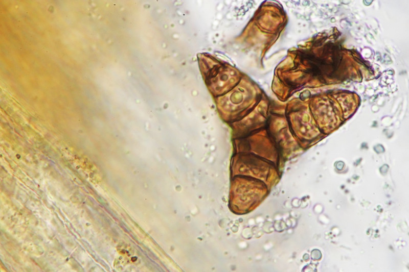 In diesem Fall waren Konidien der A. asterospermum in der Asteromassaria macrospora zu finden, was durchaus häufiger vorkommt, da beide Pilze in der Nähe wachsen.