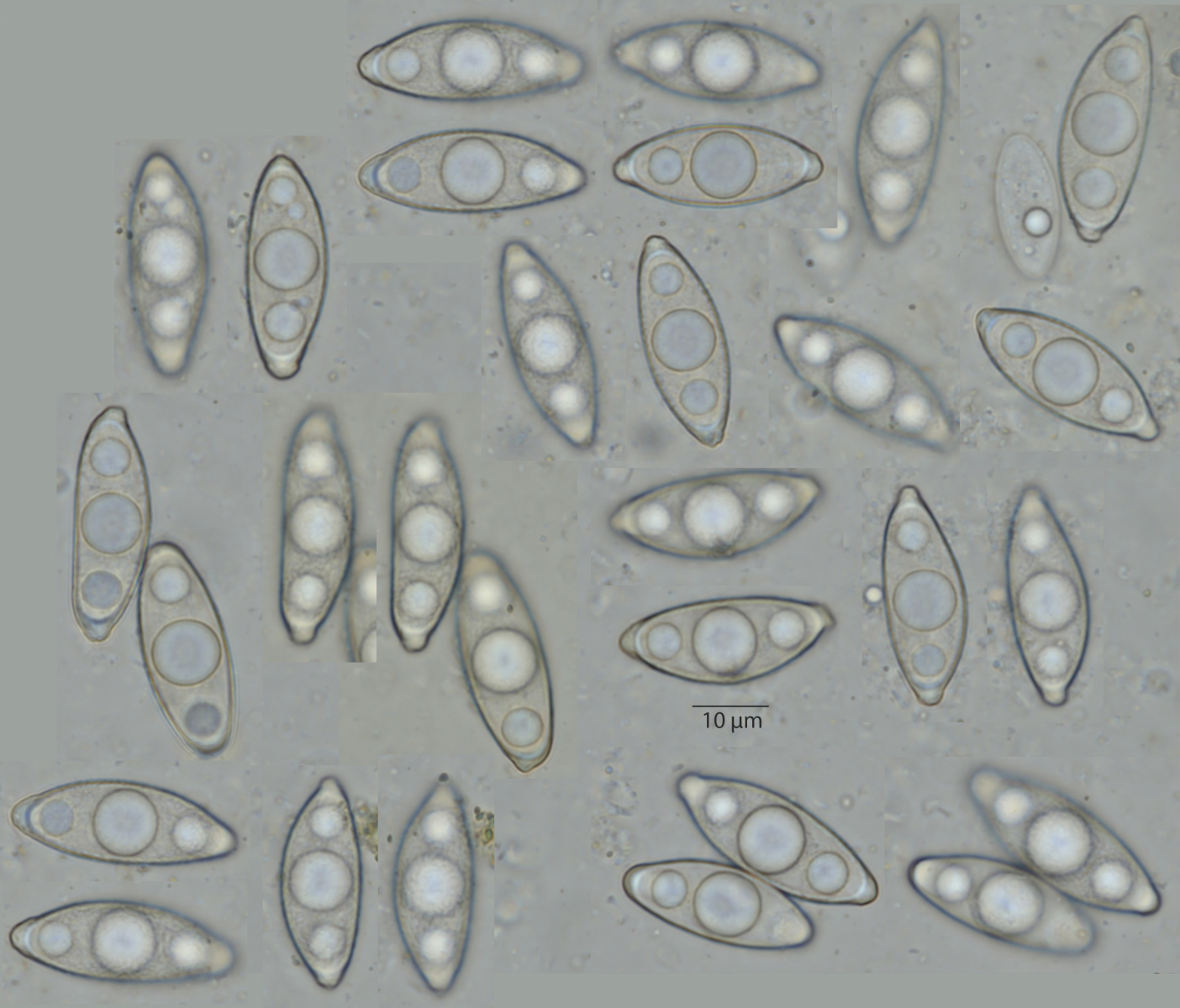 Sporenmaße ohne Kappen: 21,7-24,8-27,3 x 9,8-10,6-11,5(-11,8) µm; Q = 2,13-2,33-2,68