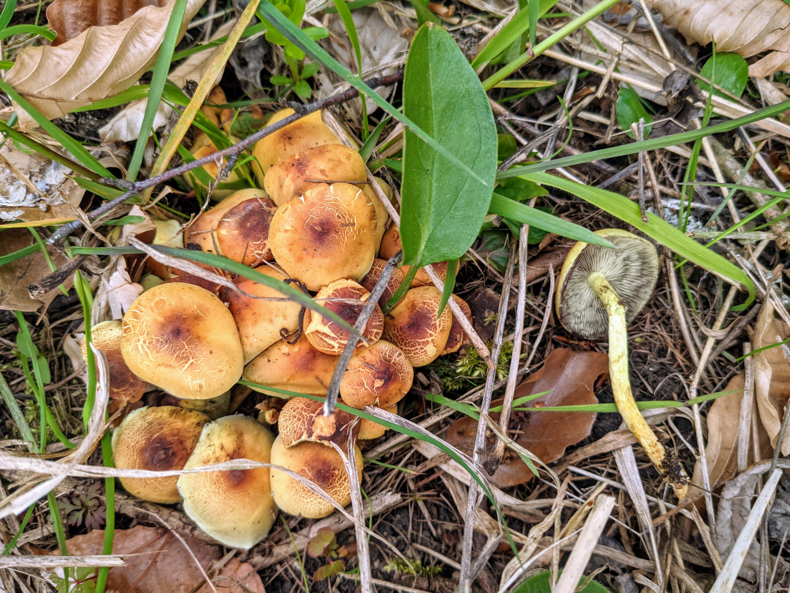 Maipilze wollten wir ja eigentlich auch gerne finden, aber die zeigten sich (noch) nicht. Dafür alte Bekannte: Grüne Schwefelköpfe