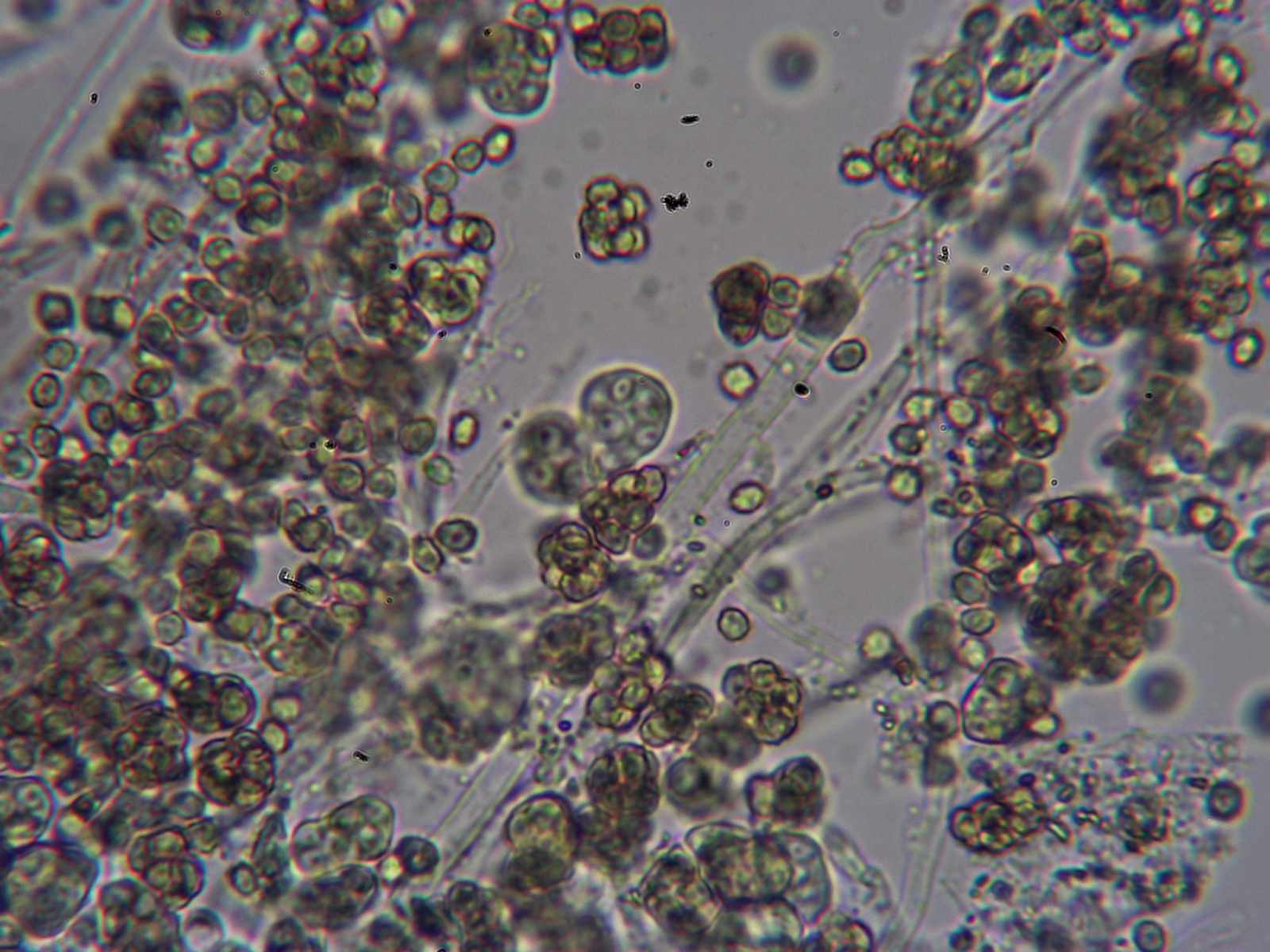 Unter dem Mikroskop ist die umgrenzende Wand kaum auffindbar, besteht aber doch auch speziellen abgeflachten Einzelzellen. Ich denke also, es sind Cleistothecien.