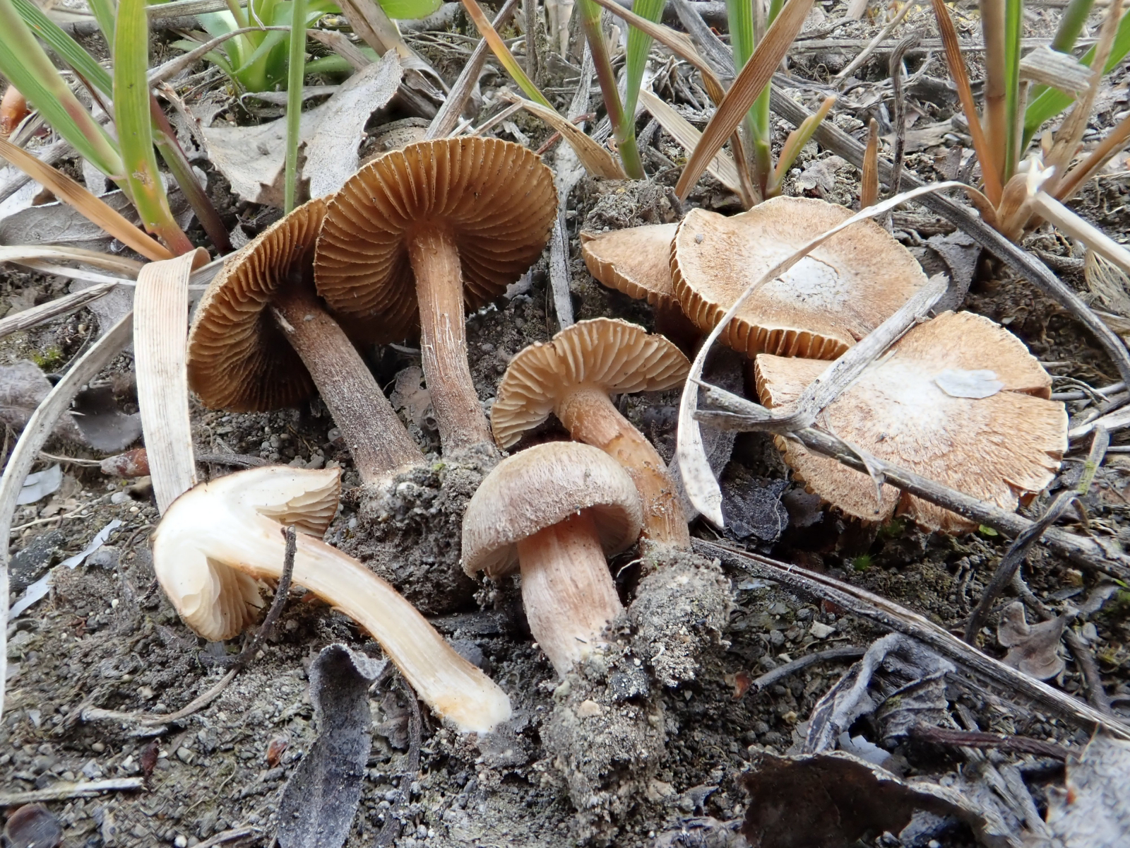 Auf einer Freifläche dann Sandborstlinge, möglicherweise Geopora sepulta, daneben winzige Rißpilze.