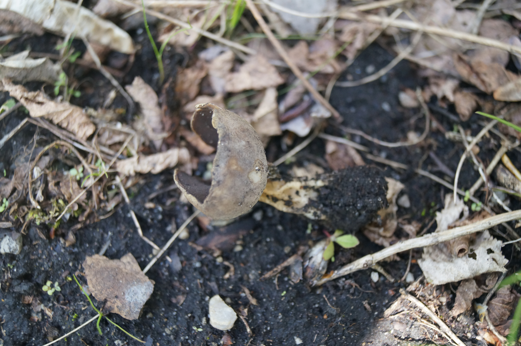 Mikroskopie steht noch aus. Ich frage hier hauptsächlich erst Mal wegen groben Ideen eurerseits an. Nach einem Bildvergleich könnte es sich bei der Lorchel um Helvella solitaria handeln. Beim Becher hatte ich Sarcosphaera coronaria als vage Idee. Einen besonderen Geruch hatte der nicht.