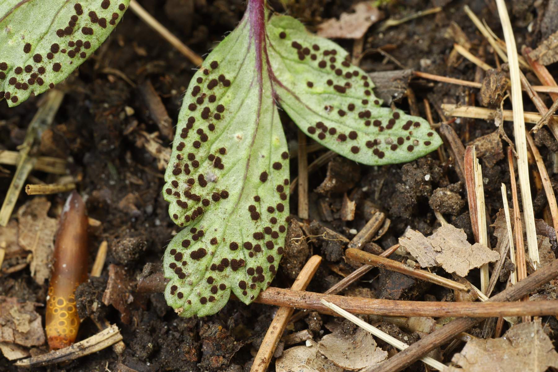 Achtet mal auf kranke Buschwindröschen. Wer kein Mikroskop hat, kann auch mit einer guten Lupe Sporen erkennen. Man sieht nicht, dass sie zweizellig sind, auch nicht die Ornamente oder die Wandstärke, aber immerhin sieht man Sporen an sich. Dafür sind sie schon groß genug.