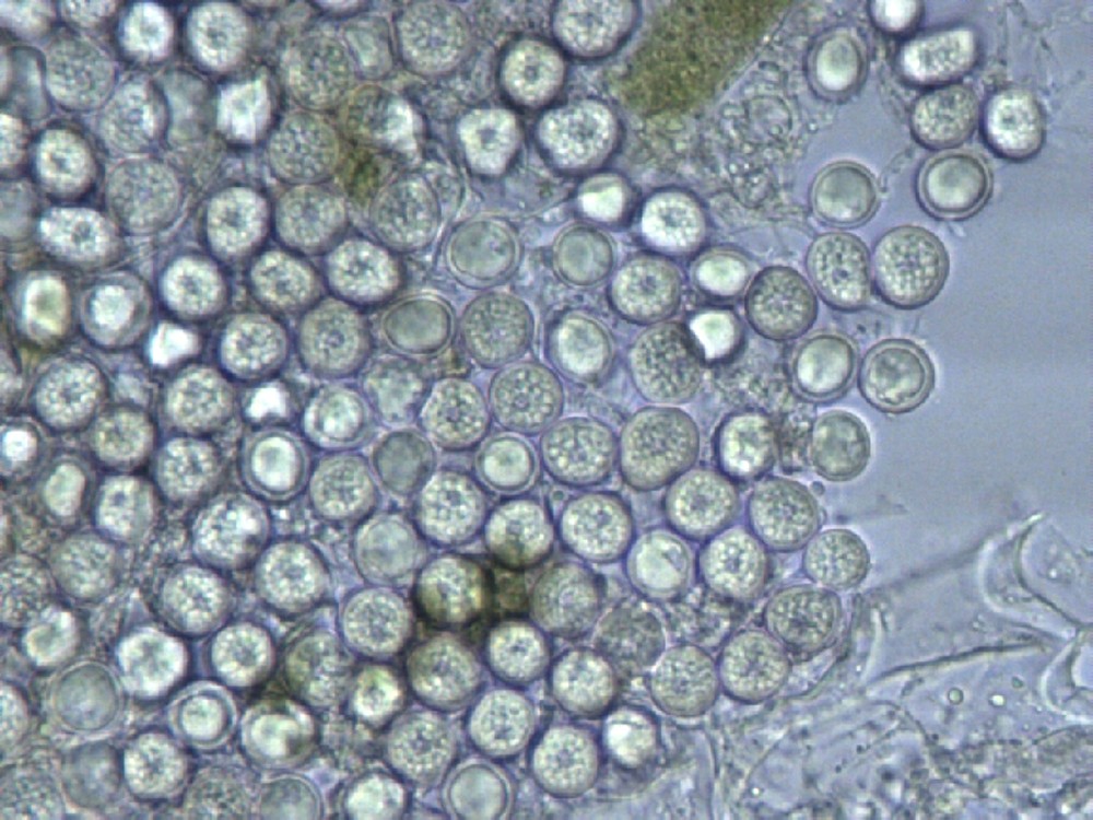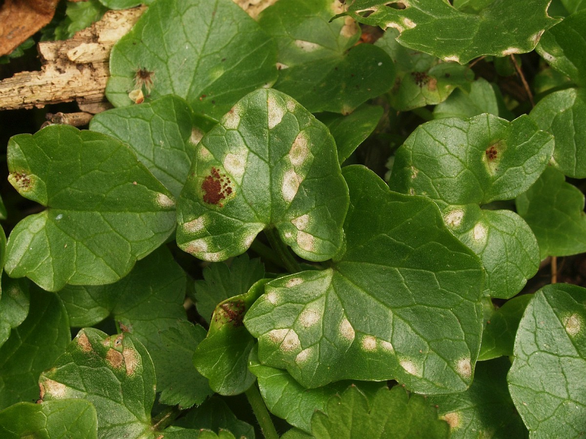 Achtet mal auf kranke Buschwindröschen. Wer kein Mikroskop hat, kann auch mit einer guten Lupe Sporen erkennen. Man sieht nicht, dass sie zweizellig sind, auch nicht die Ornamente oder die Wandstärke, aber immerhin sieht man Sporen an sich. Dafür sind sie schon groß genug.