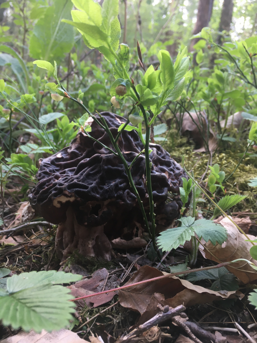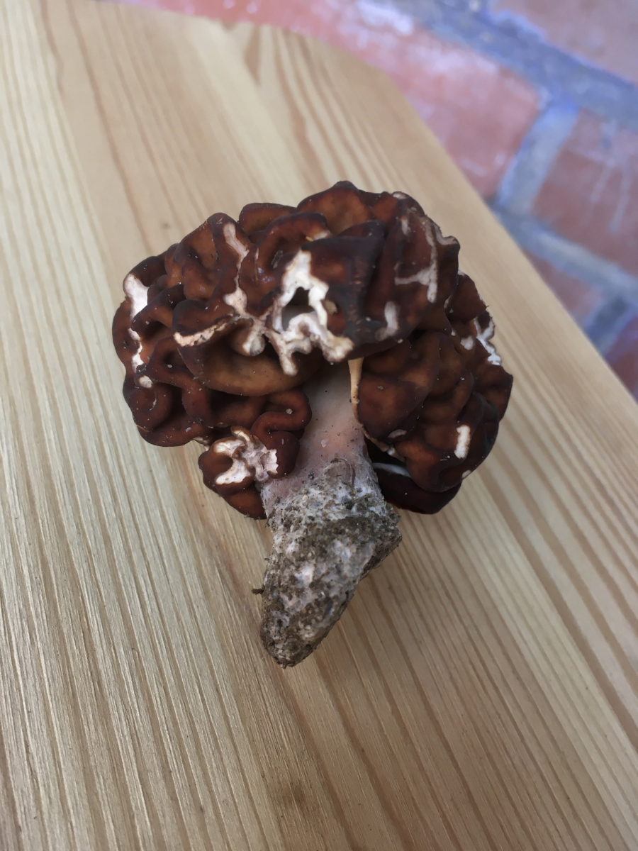 auch wenn ich umgeben von Sandkiefernwald eigentlich im klassischen Gyromitragebiet leben sollte haben sie sich bisher vor mir erfolgreich versteckt. Ich habe auf den Tip von - ich glaub es war Oehrling- speziell meine bekannten Grünlingsstellen abgesucht, die waren aber leider in den letzten Wochen alle zu trocken. Fündig wurde ich letztendlich in einem offenbar im Untergrund etwas feuchteren Abschnitt eines alten Holzweges mit Fingerhut und vereinzelten Binsen hinter einem Großparkplatz (im Revier von Notdurft, Kondompackungen und Schnapsflaschen). Dafür kam ich dort aus dem Staunen nicht mehr raus, je weiter ich den Weg hinunter ging umso gigantischer wurden die Lorcheln. Gegen Ende waren es fast handballgroße Teile. Ich dachte daher bei den Letzten auch aufgrund der wenigen Gyri evtl. an G. gigas, was sich aber mikroskopisch nicht bestätigte.