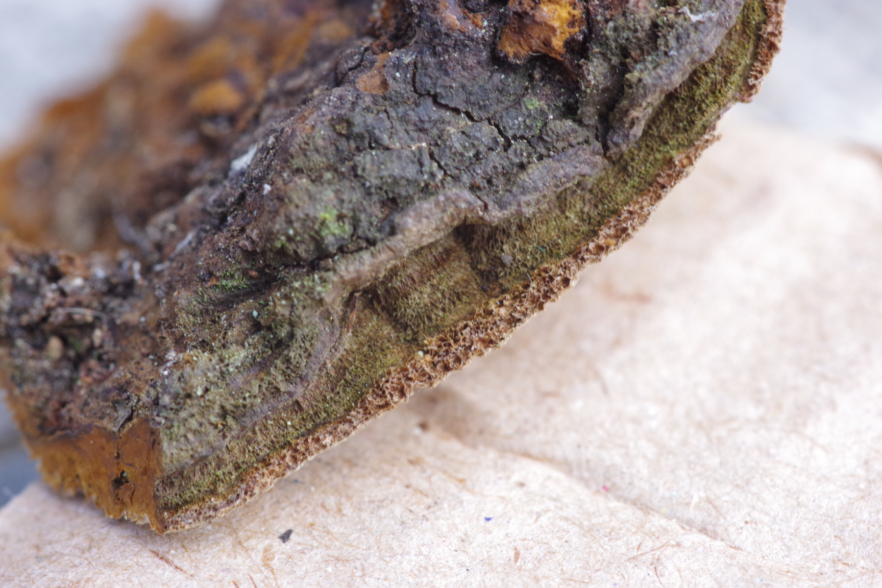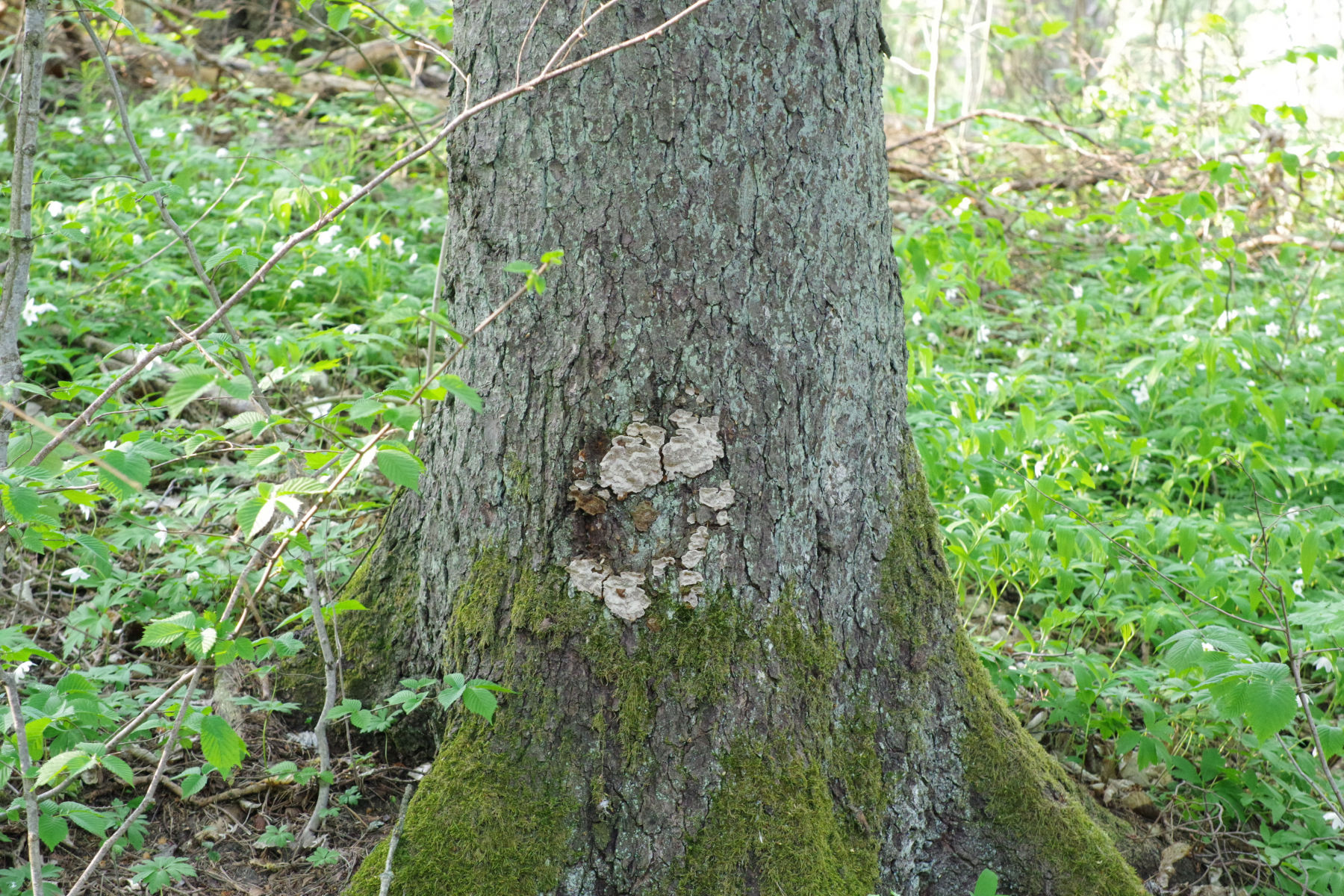 nachdem ich D. mollis nun schon an Ahorn, Hasel, Espe, Eberesche und Salweide hatte, heute ein Fund an einer alten Fichte (so um die 100 Jahre), die aber quicklebendig wirkt und an der Stelle auch keine Verletzung erkennen lässt, wenngleich eine solche wahrscheinlich ist, vielleicht durch Wildschwein, weil das deren Rubbelhöhe ist. Vorsichtshalber habe ich einen Beleg mitgenommen, falls es Bedenken gibt, dass der eigentlich nicht an Fichte wachsen kann und das möglicherweise eine andere Art sein könnte. Knapp 20 km entfernt im Tal der Dubysa, wo die Wälder in den vielen eingekerbten Seitentälern wenig bis gar nicht bewirtschaftet werden.