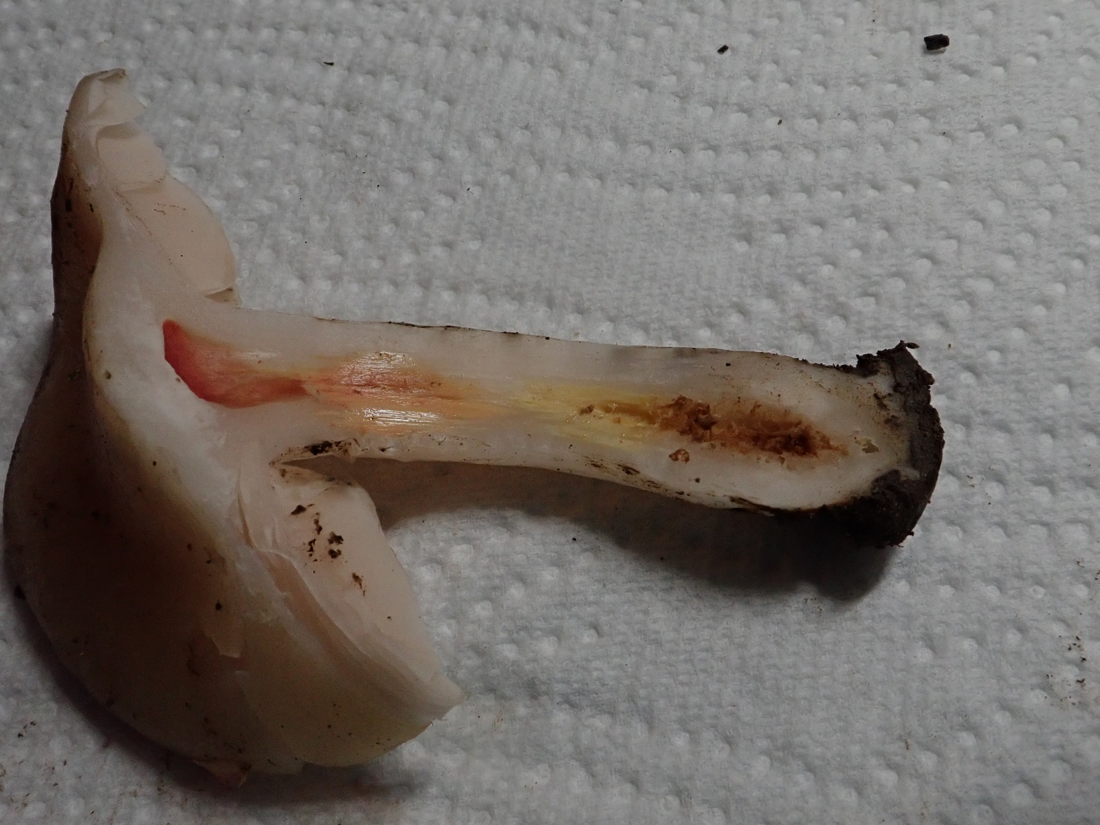 Gerne wird ja für den Schlehenrötling angefürt, dass sich Fraßgänge von Maden rotbraun verfärben, was ich zumindest für Exemplare von diesem Fundort bestätigen kann.