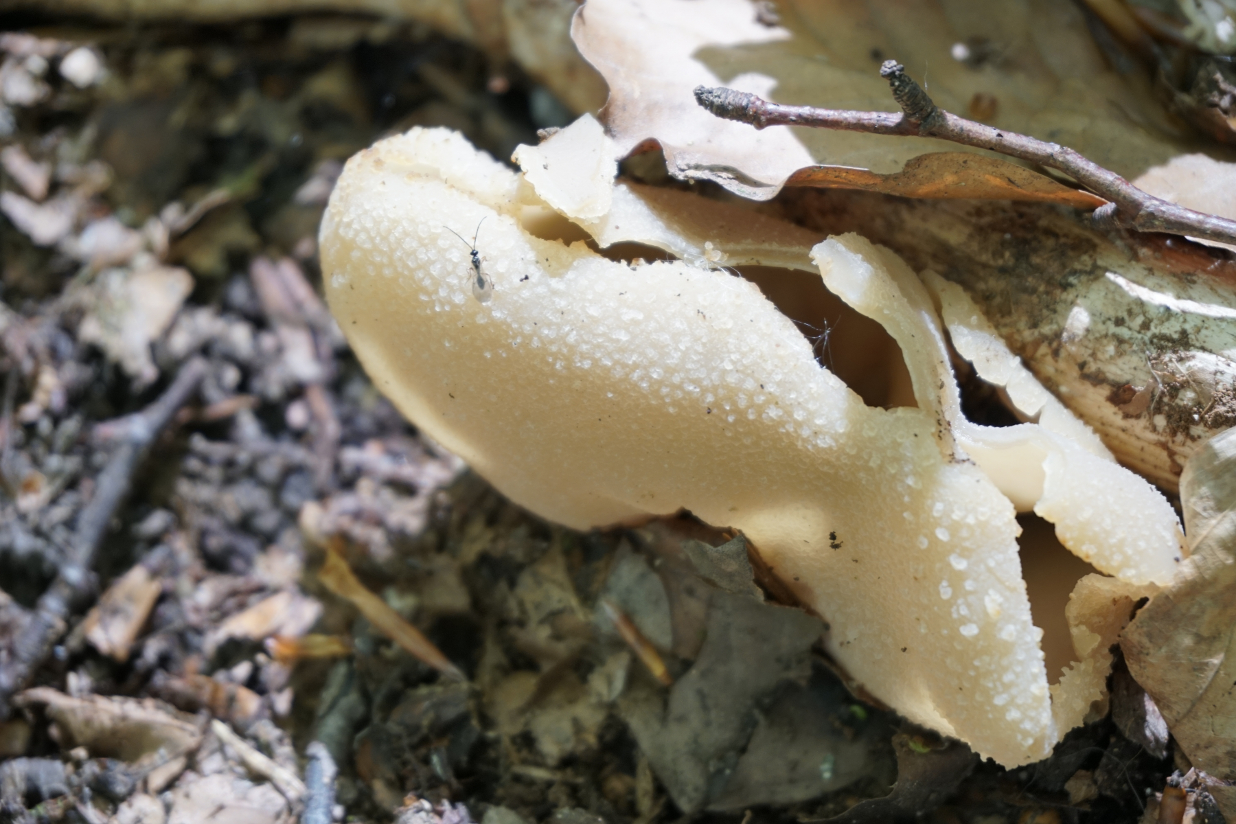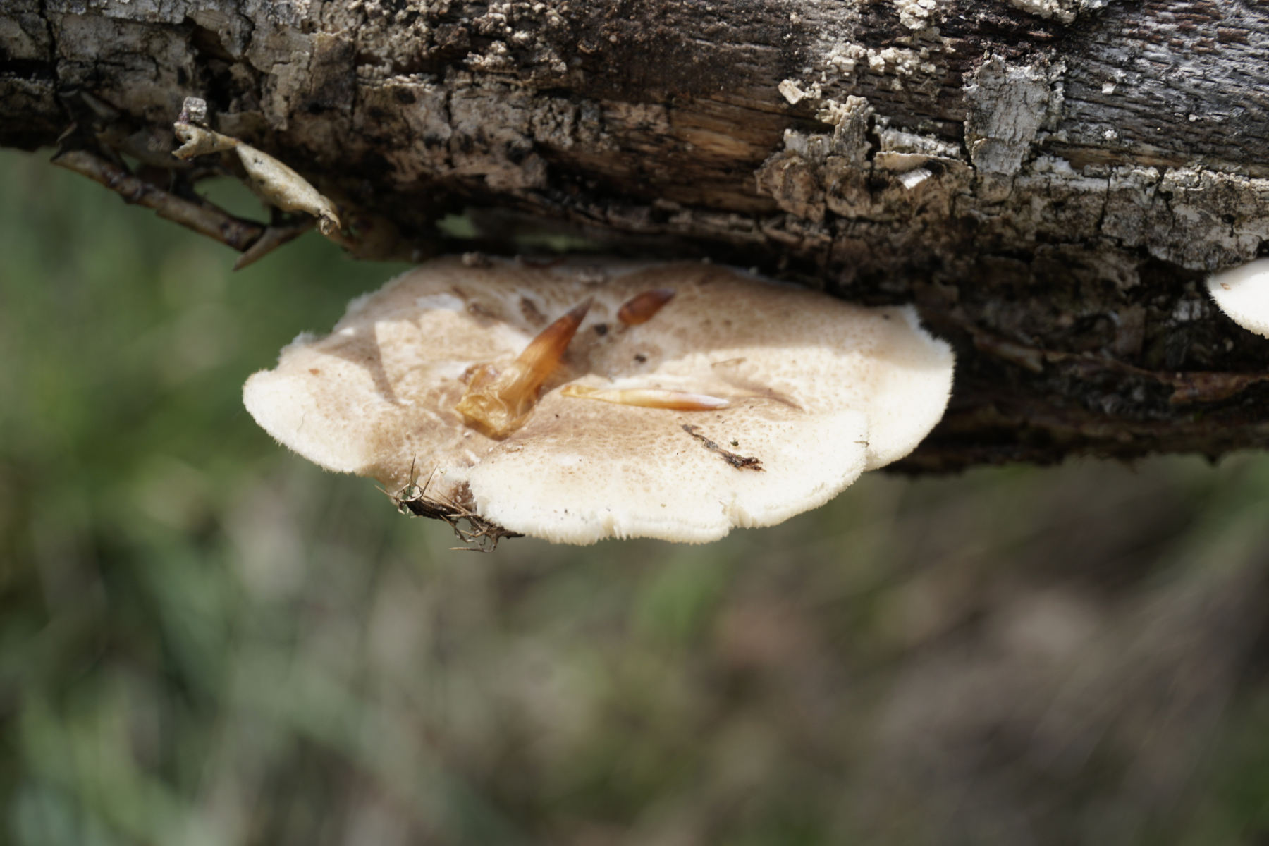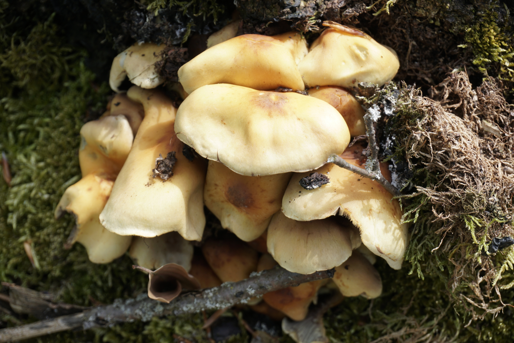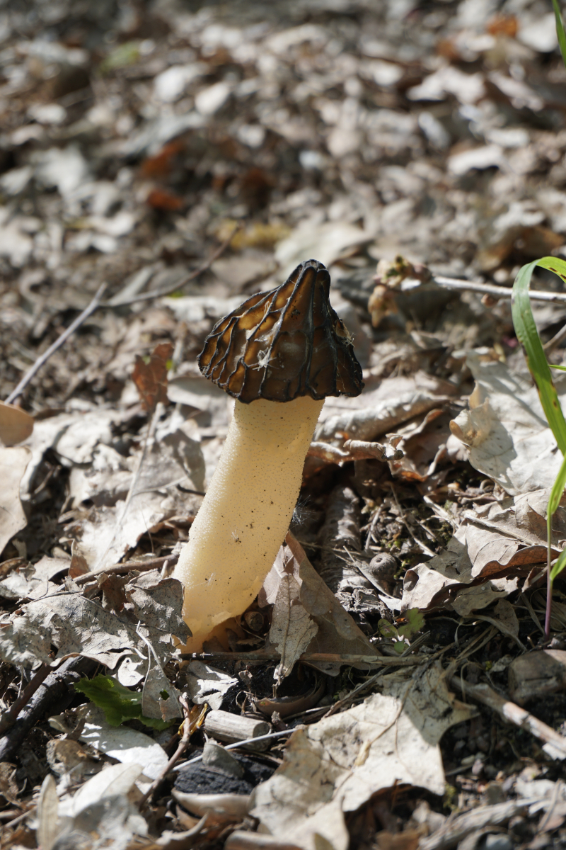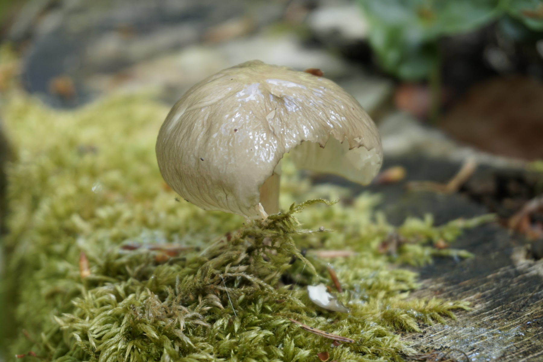 Die potenziele Scheibenlorchel war auf einem morschen Baumstamm. Mehrere Baumstammen standen in eine geordnete Reihe. Andere waren offensichtlich Nadelnholz, es war nicht zu erkennen den Stamm mit potenzielen Scheibenlorchel.
