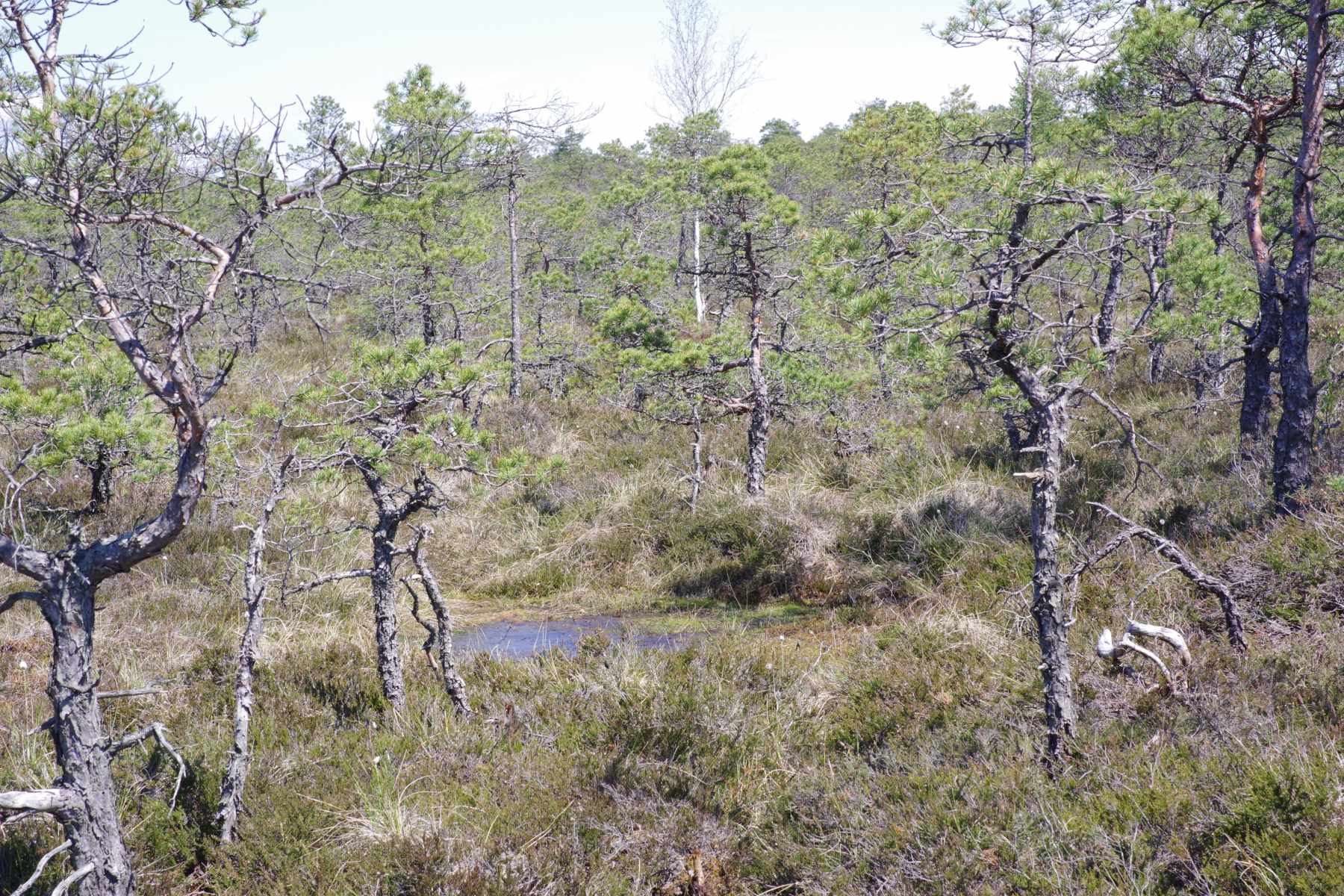 14) der Übergang vom Hochmoor auf die Insel vollzieht sich zum Teil über ein Lagg mit Schwarzerlen und stehendem Wasser, hier wollte ich Mitrula paludosa finden, der wollte aber nicht.