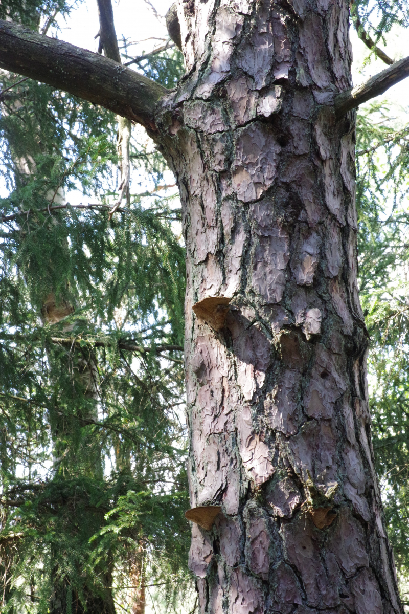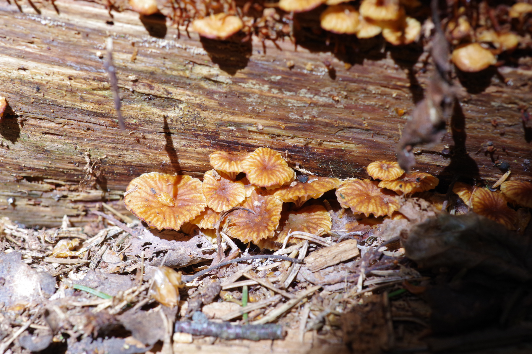 15) auf der größten Insel stehen noch einige Fichten mit deutlich über 1m BHD, auf einer brütet der Schreiadler, die waren zu Hause. Andere Fichten dieser Altersklasse liegen rum, zum Teil finalmorsch. An einer gab es Xeromphalina campanella