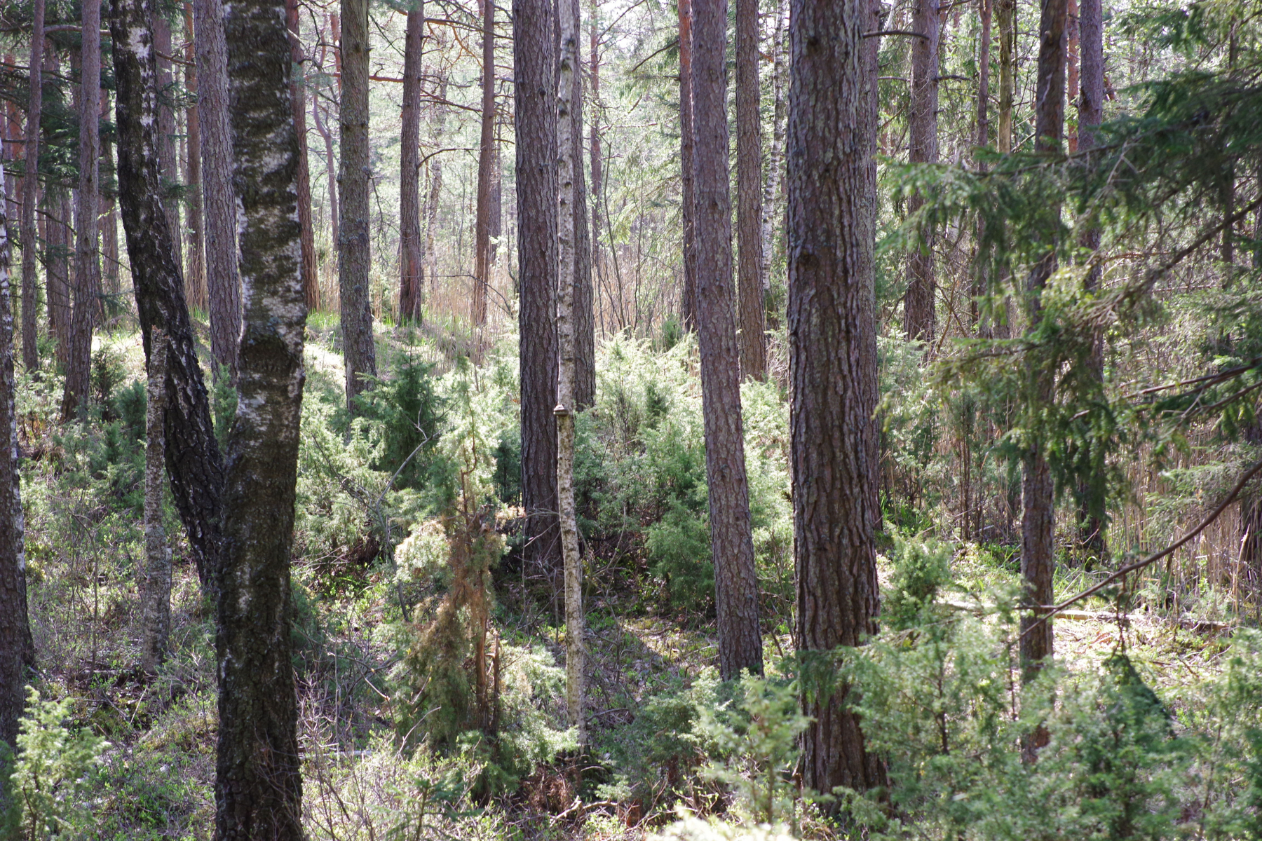 17) Eine weitere Insel, die ziemlich deutlich wie ein Esker aussieht, hat teils dichten Wacholderbestand - ohne Pilze. Elche setzen den Wacholdern ganz schön zu.