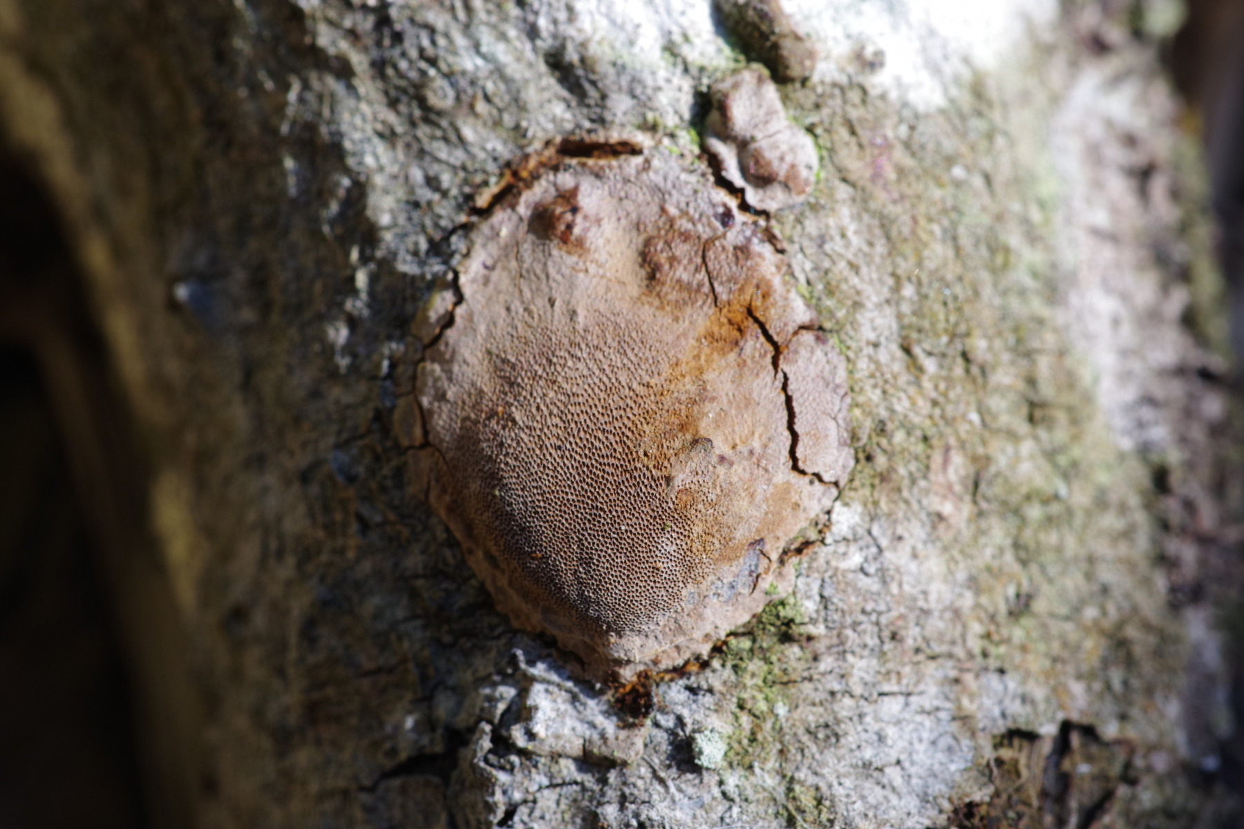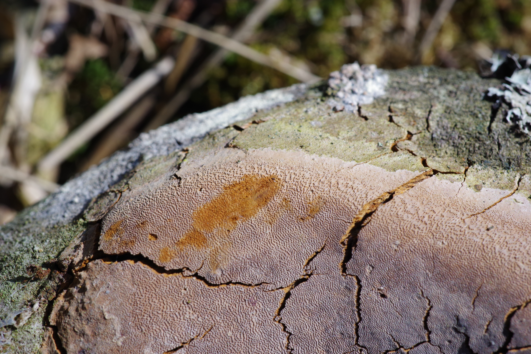 23) Und zum Schluss bin ich noch an einem bibergeplagten Bestand von Frangula alnus vorbei, eingedenk dessen, dass es da einen Phellinus rhamni geben könnte (Feuerschwamm an Faulbaum). 2 verschiedene resupinate Phellinusse habe ich gefunden.