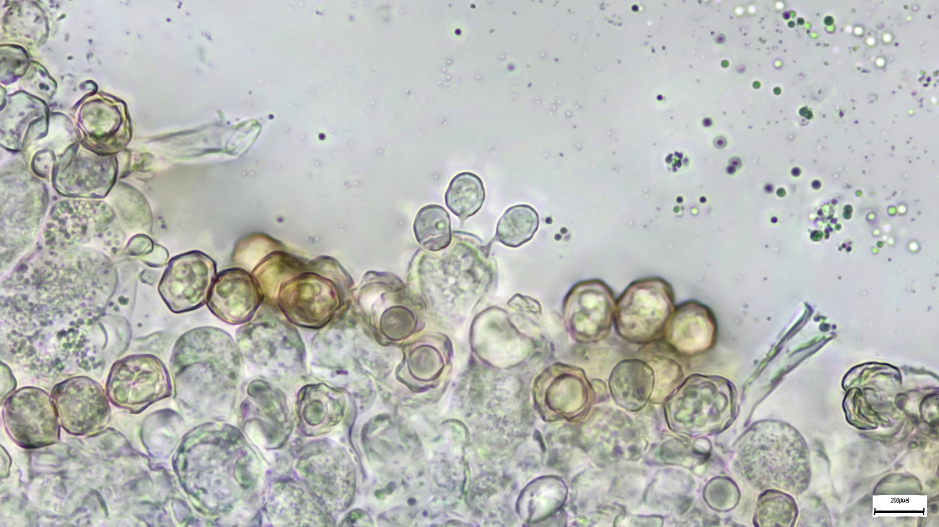 Sporen in Wasser: Me = 9.4 × 8.2 µm ; Qe = 1.1