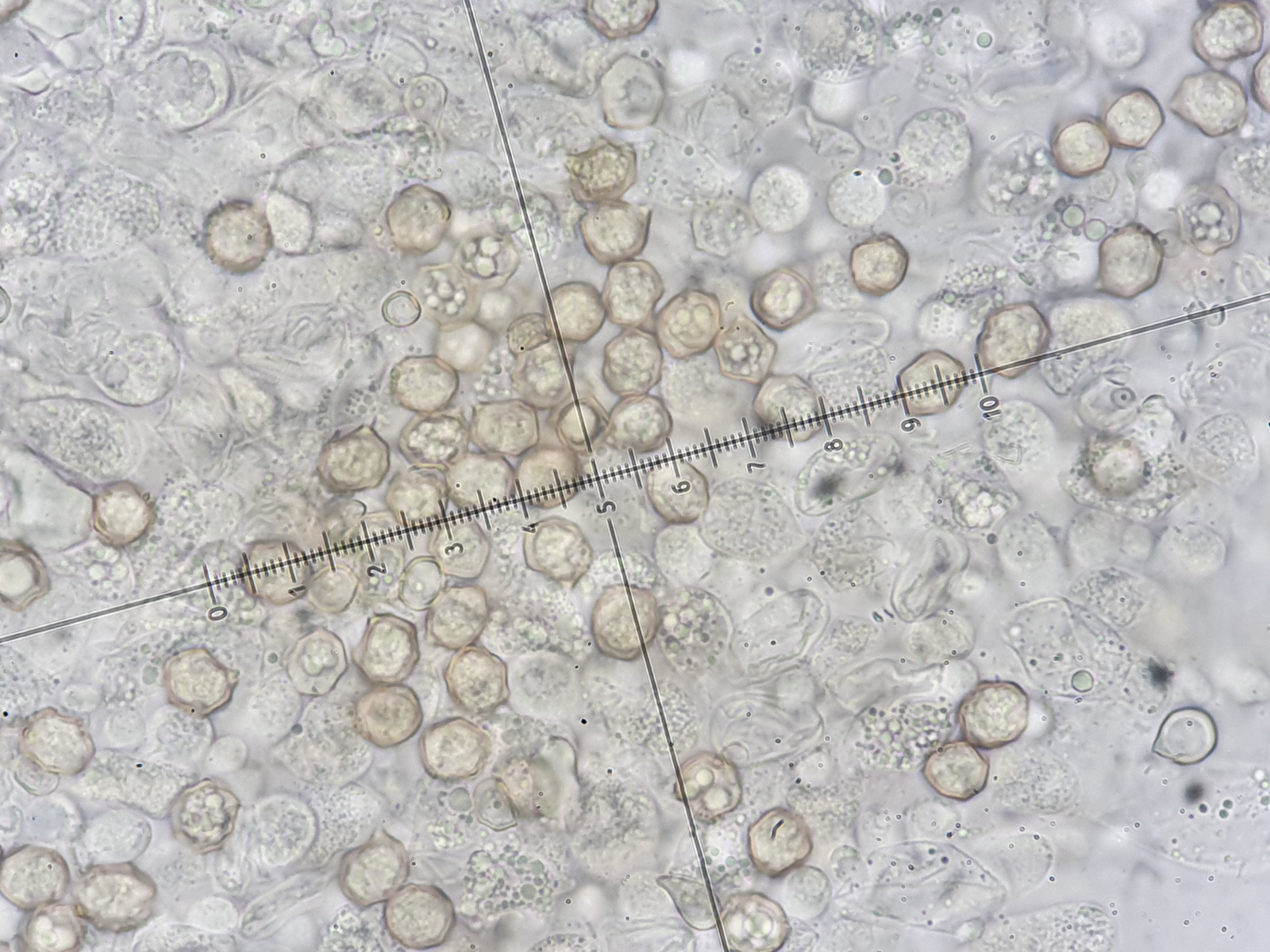 • Also ich habe mir nochmal die Sporen angesehen und es läuft dann wohl alles auf einen etwas schmächtigen, wenig mehligriechenden Schildrötling raus.