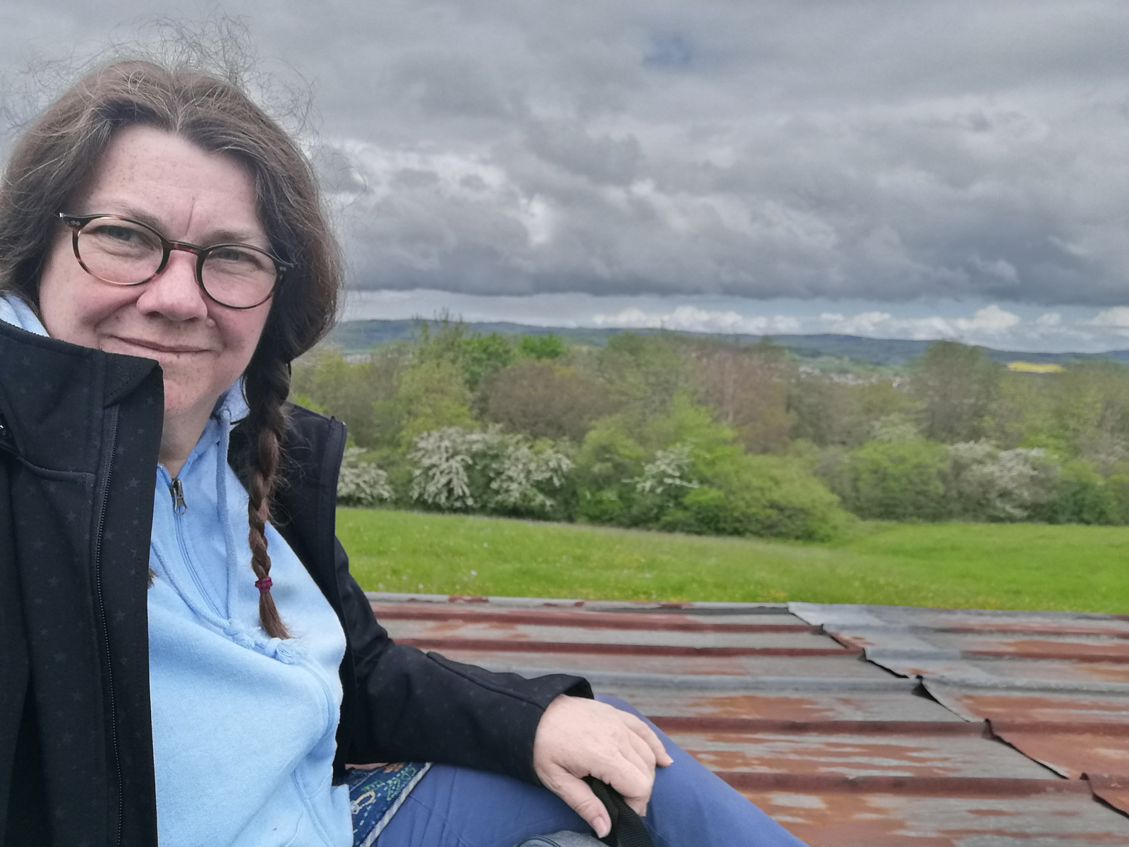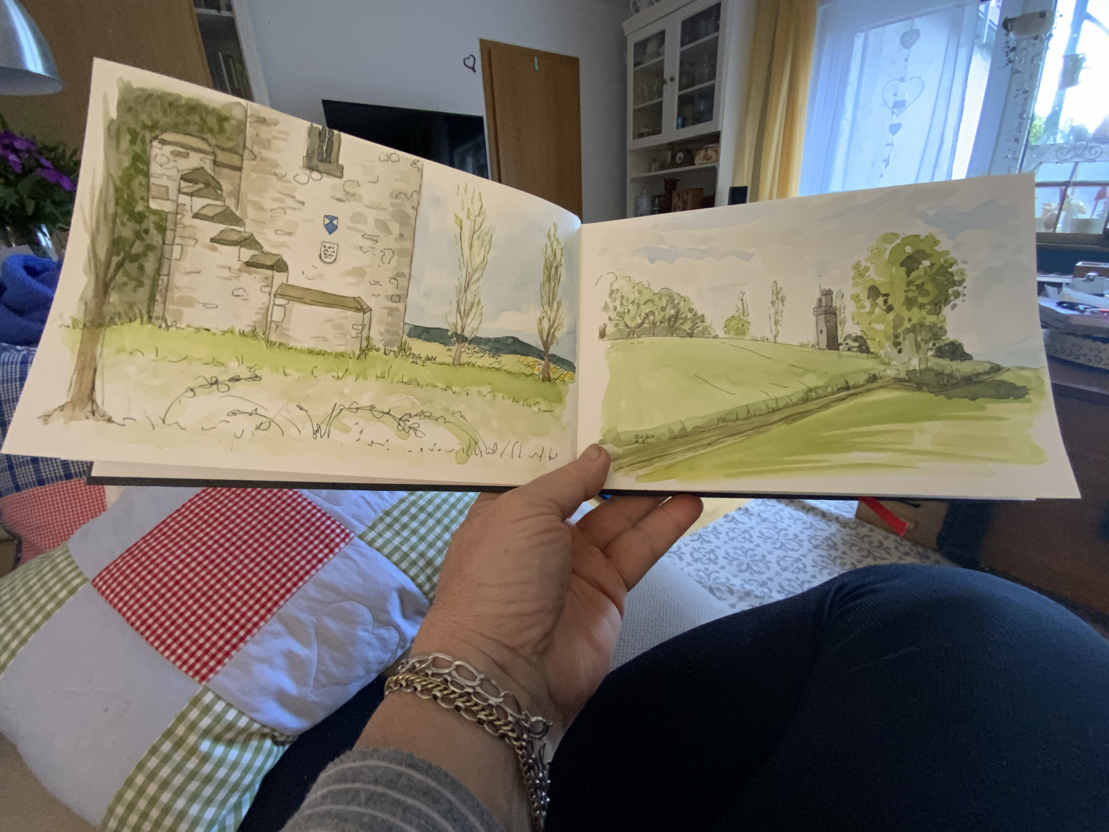 Zum Skizzieren des ersten Motivs kletterte ich auf einen Vieh-Unterstand, da saß ich schön trocken,