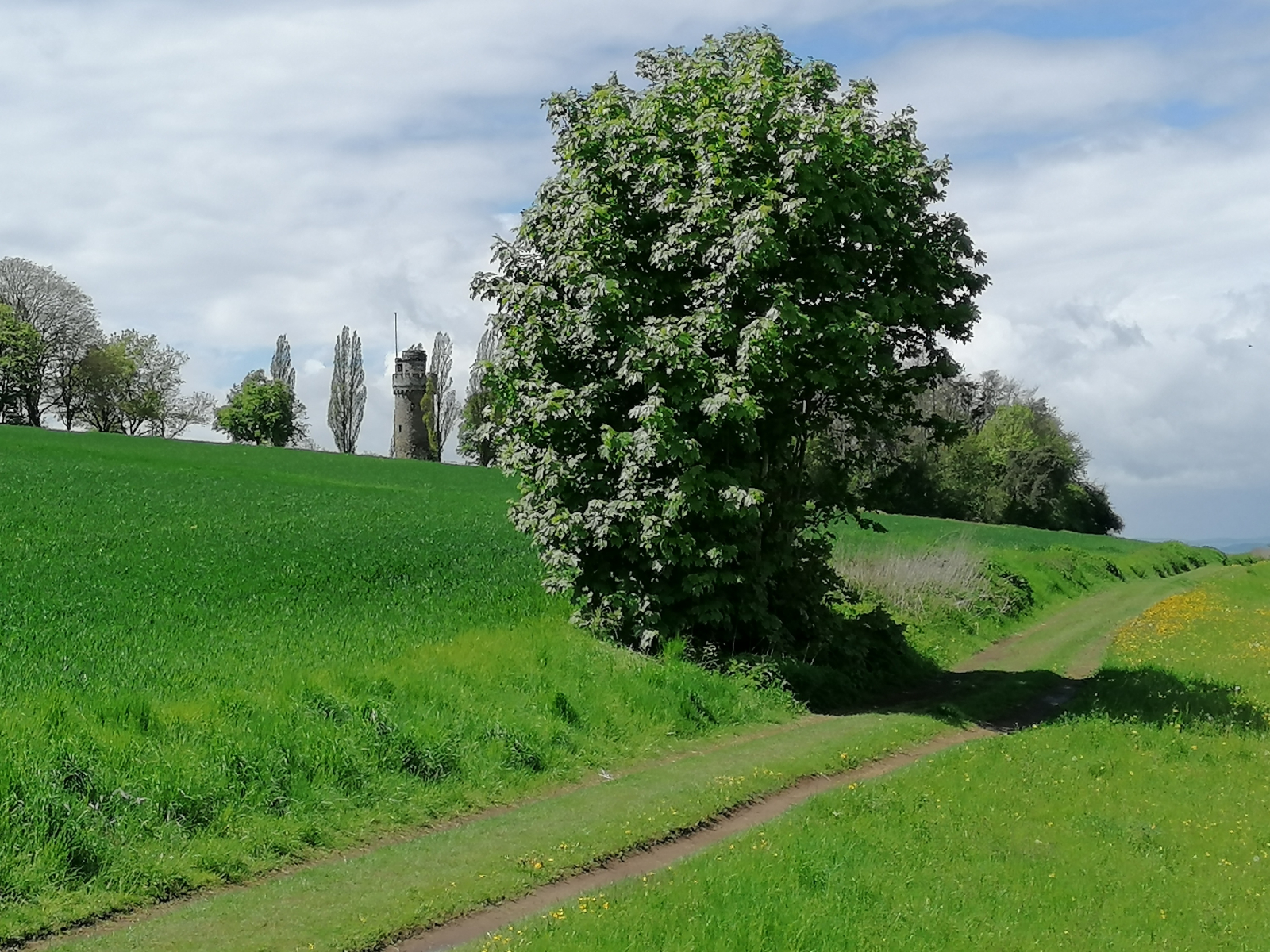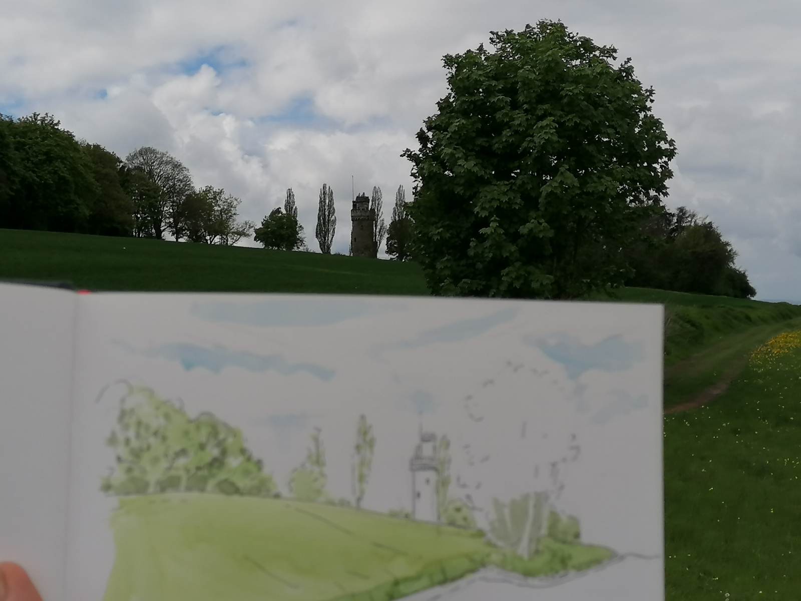 Heute Mittag habe ich mich endlich mal nach draußen begeben, um etwas zu skizzieren. Unsere Garbenheimer Warte hatte ich als Motiv auserkoren. Leider ist dieser kleine Turm seit Jahren eingezäunt, weil er angeblich einsturzgefährdet sein soll. Aber gemacht wird daran auch nichts.
