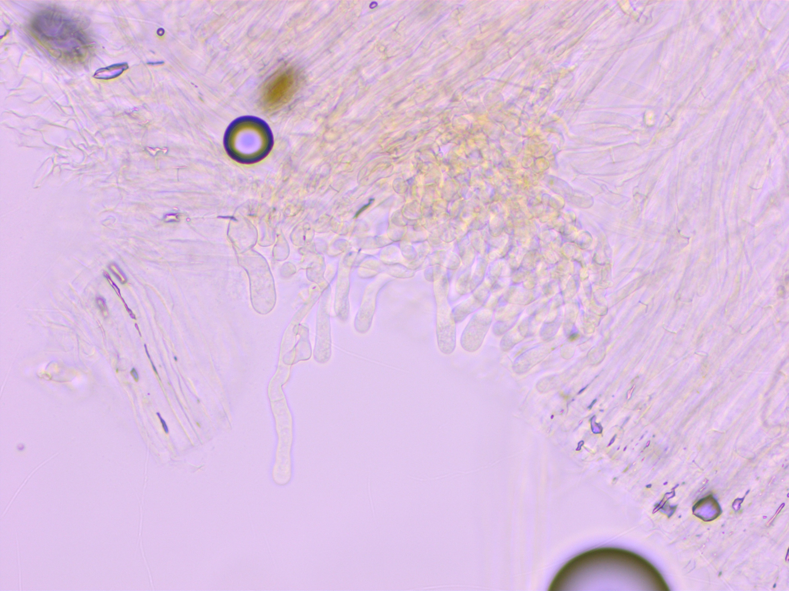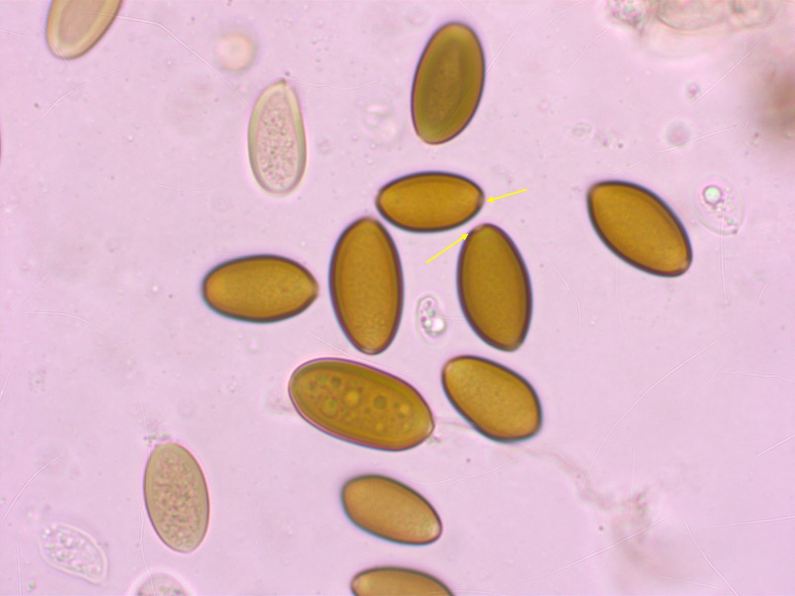 Ich meine, dass der Keimporus deutlich exzentrisch ist. Ausserdem konnte ich keine einzige Kaulochrysozystide finden.