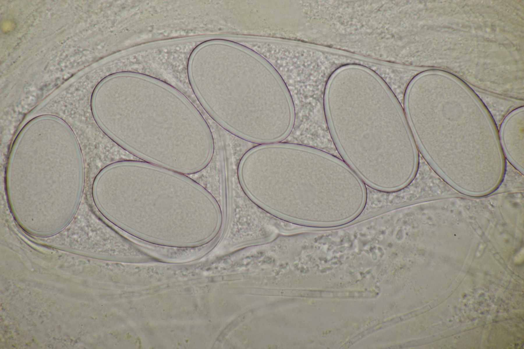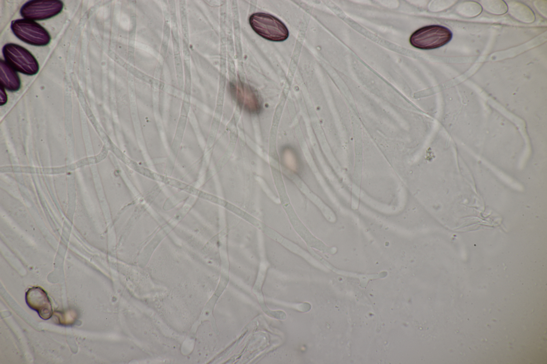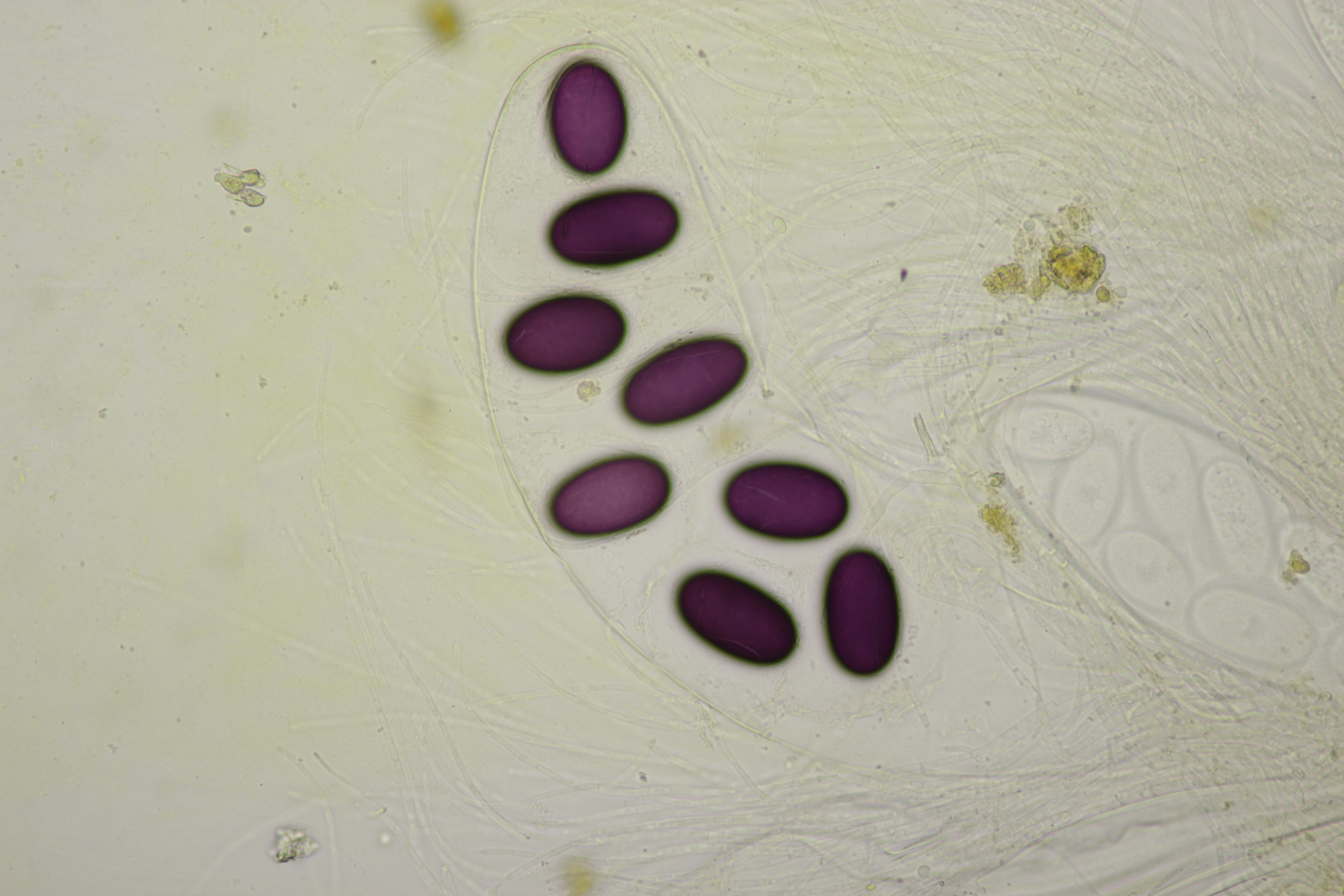 Ebenfalls typisch und ein gutes Unterscheidungsmerkmal zu Lasiobolus ciliatus sind die breiten, +/- biseriaten Asci.