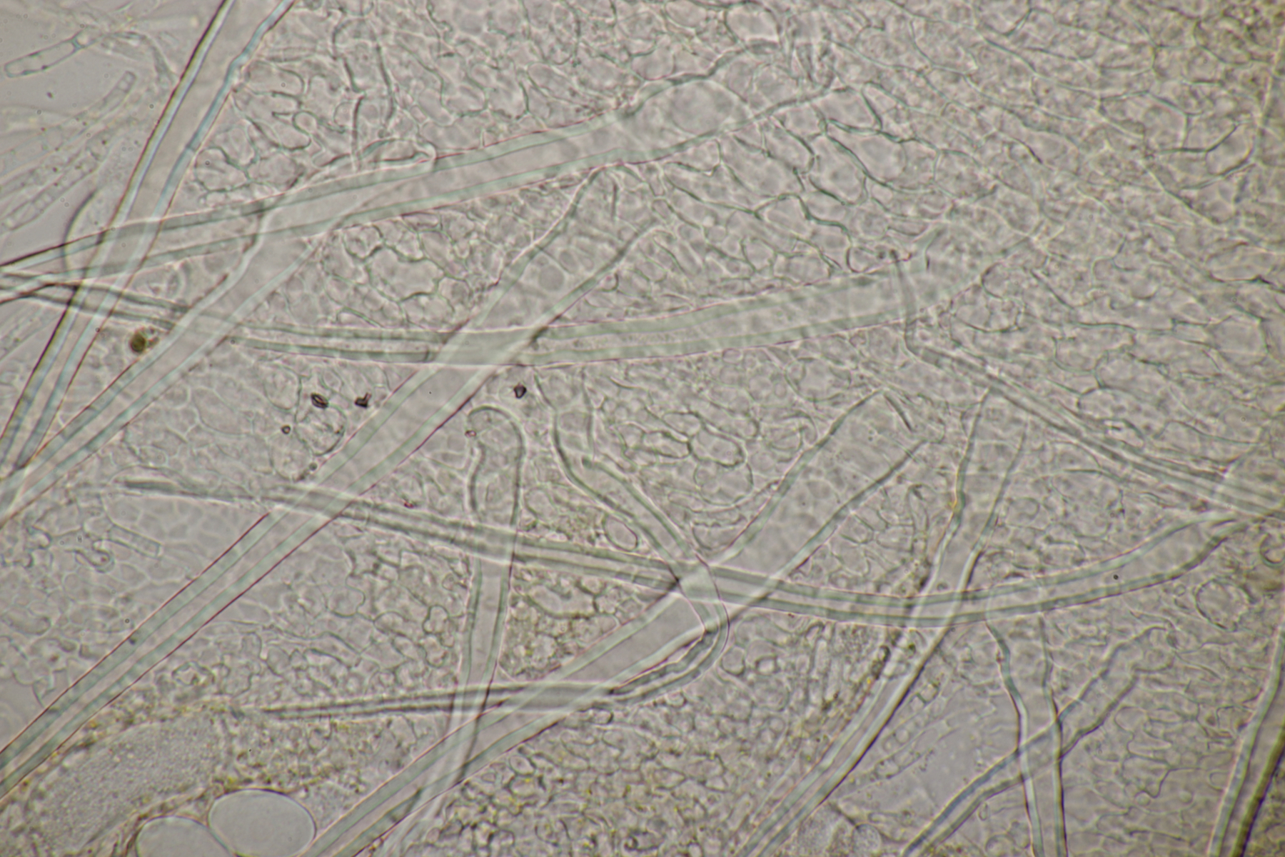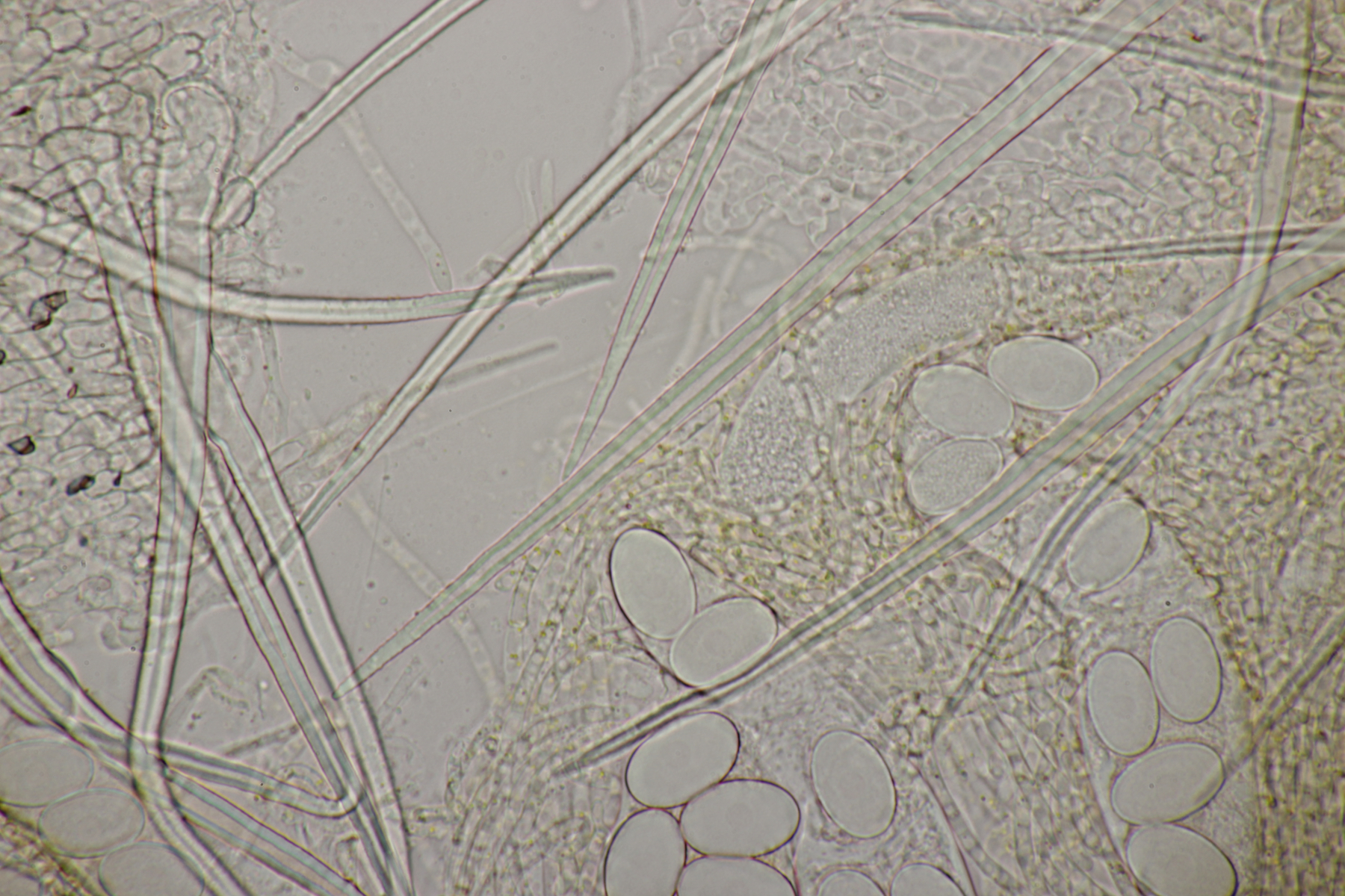 4. Noch etwas Farbenfrohes! Sporenmaße (19-21) µm x (13-14) µm und Haare, deren Basis um die 12 µm messen, bringen mich zu Lasiobolus cuniculi