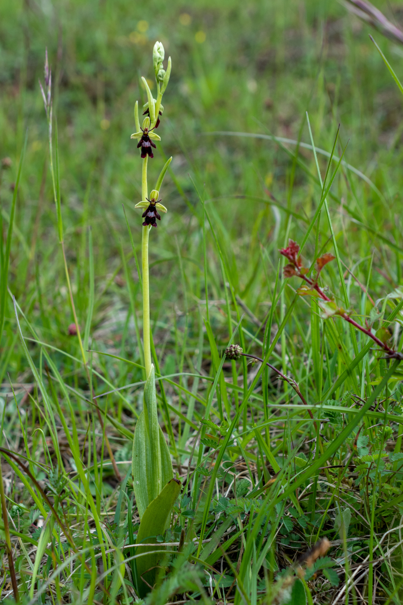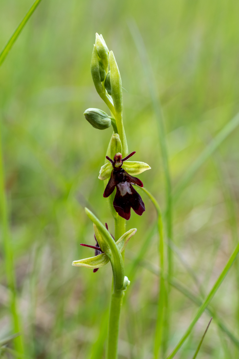 1.Fliegenragwurz (Ophrys insectifera) . Diese schöne Ragwurz begegnete uns in allen 3 Gebieten. Sie ist in der RL NDS in der Kategorie 3 (Gefährdet) angesiedelt. Im 2 Gebiet endeckten wir ein Massenvorkommen mit hunderten von Exemplaren.