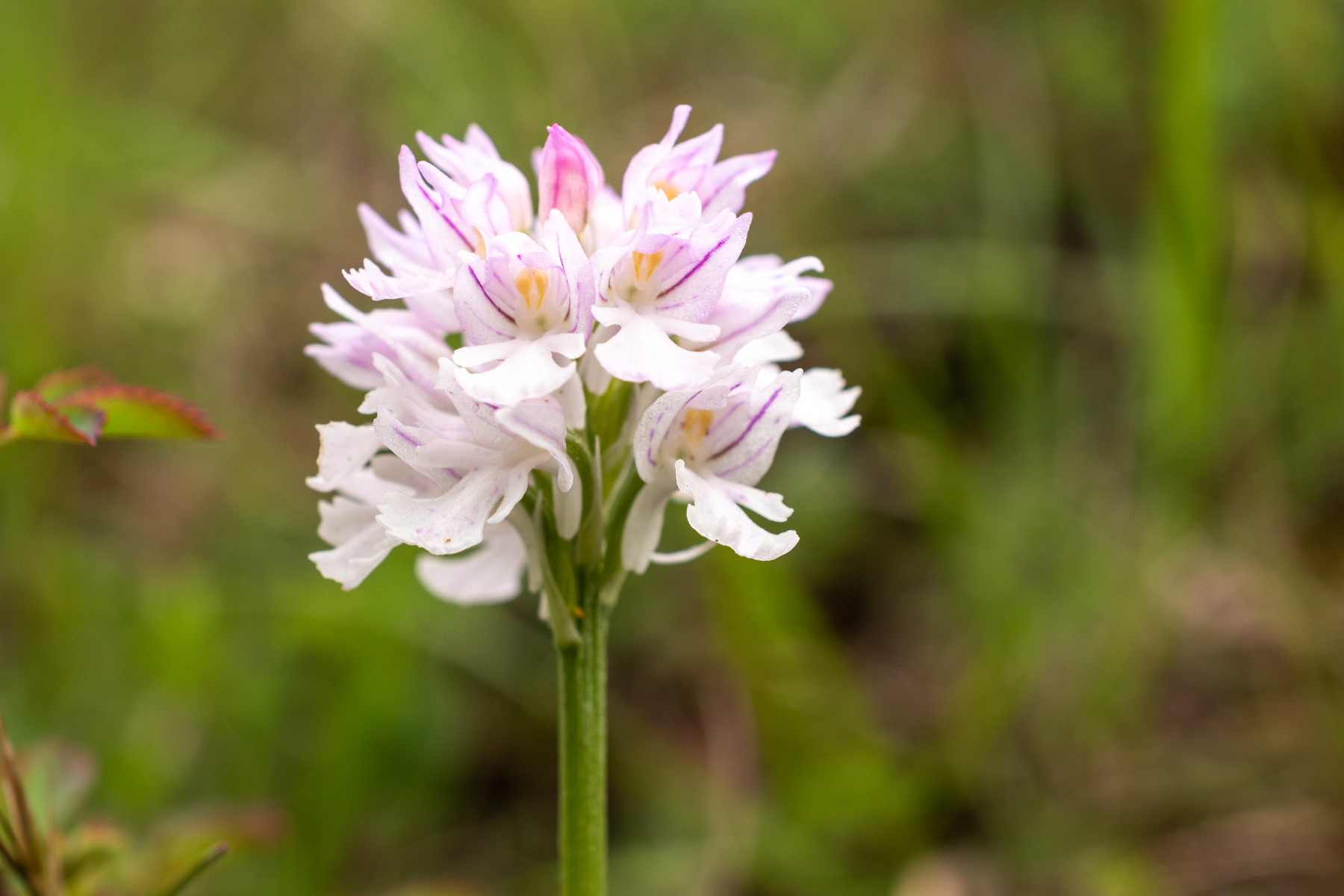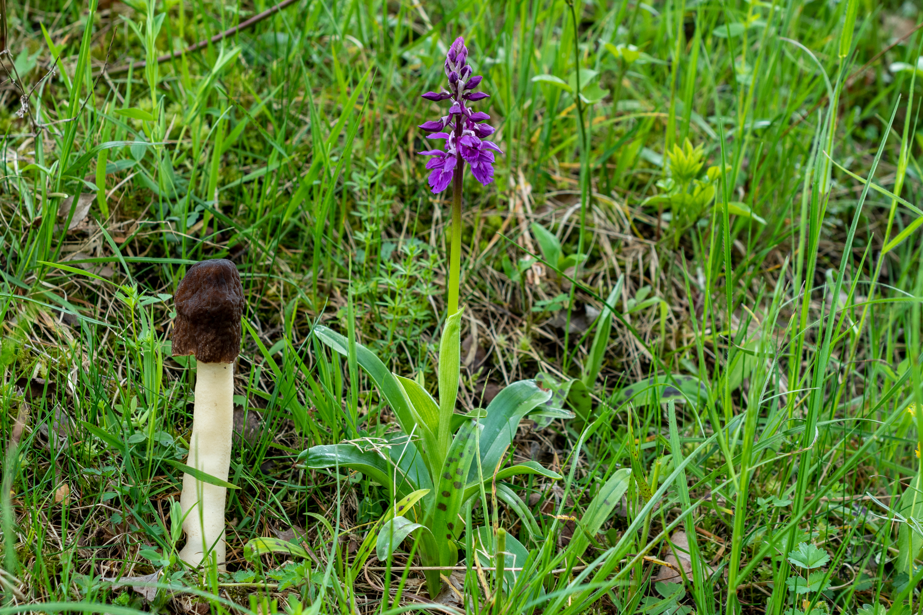 Die nächste Orchidee war das Manns-Knabenkraut (Orchis mascula). Sie war mit über 1000 Exemplaren am gesamten Tag vertreten und fehlte nur im dritten Gebiet. Das Bild zeigt die Weiße Variante Orchis mascula var. alba die mit 3 Exemplaren vertreten war. Sie ist in der RL NDS Kategorie 3 (gefährdet).