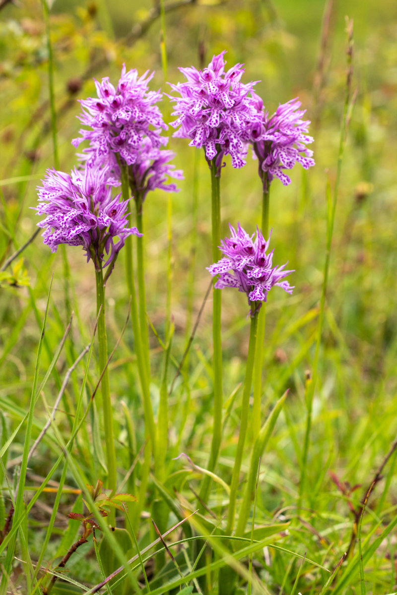 Ebenfalls ein Massenvorkommen im 2 Gebiet hatte das Dreizähnige Knabenkraut (Neotinea tridentata). Sie ist hauptsächlich in Mitteldeutschland anzutreffen und ich sah sie zum ersten Mal. Wir fanden viele Farbvariationen vor. In der Roten Liste Niedersachsen ist sie in der Kategorie 2 (Stark gefährdet) angegeben.