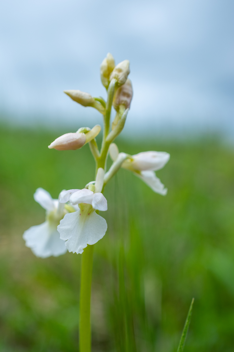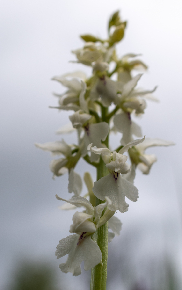 Die nächste Orchidee war das Manns-Knabenkraut (Orchis mascula). Sie war mit über 1000 Exemplaren am gesamten Tag vertreten und fehlte nur im dritten Gebiet. Das Bild zeigt die Weiße Variante Orchis mascula var. alba die mit 3 Exemplaren vertreten war. Sie ist in der RL NDS Kategorie 3 (gefährdet).