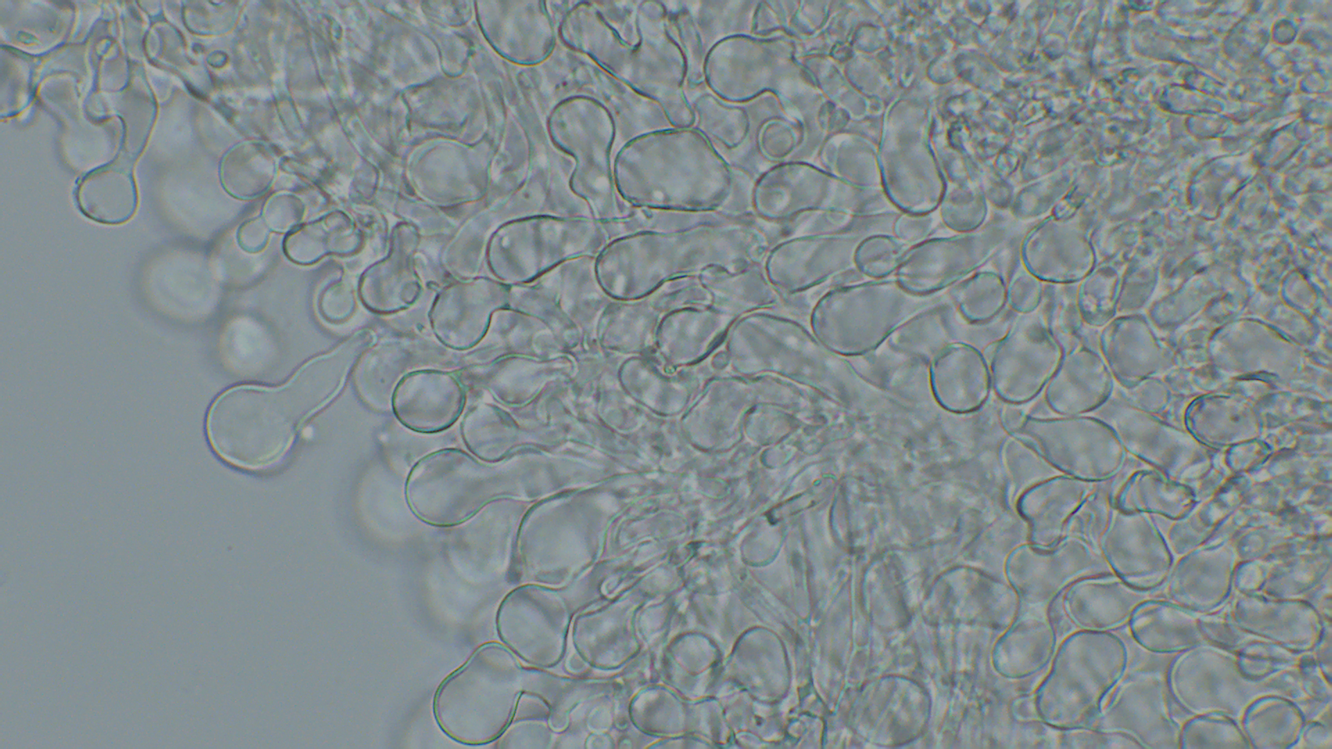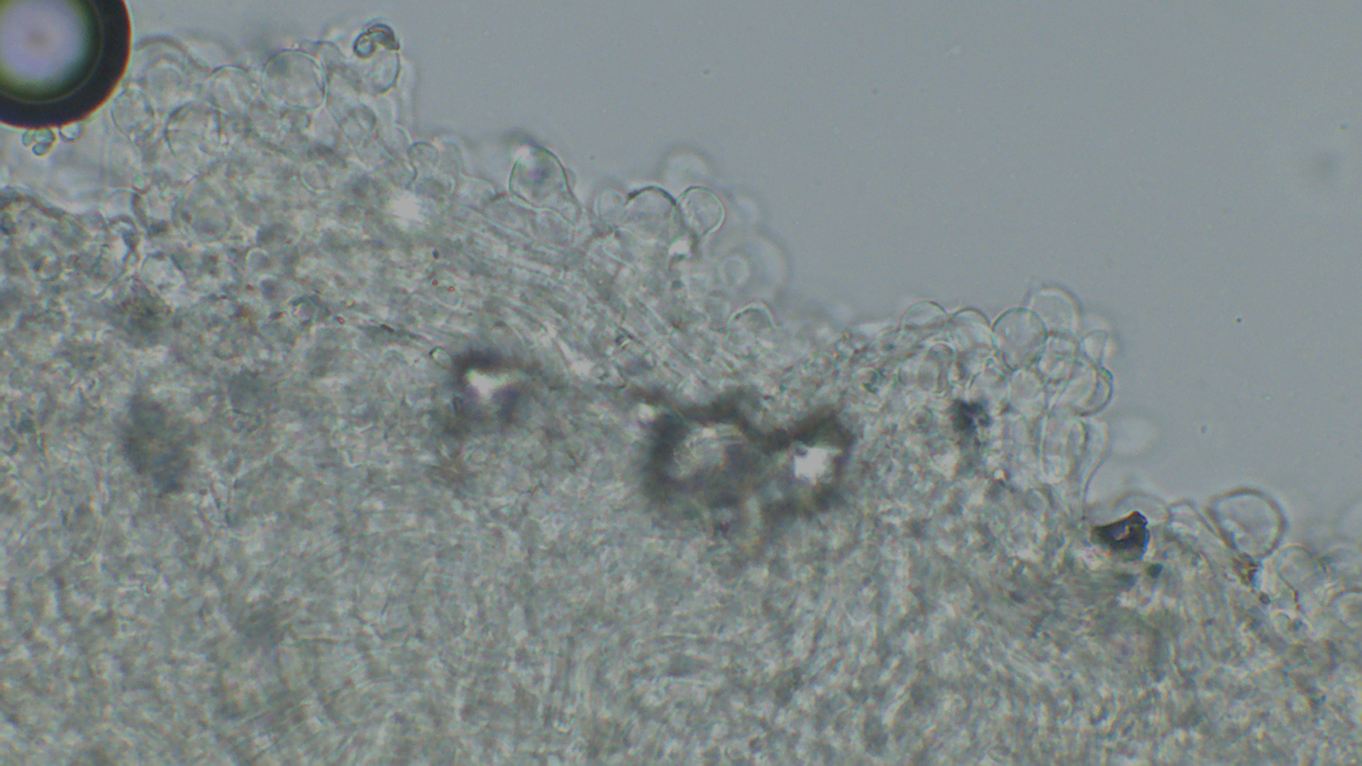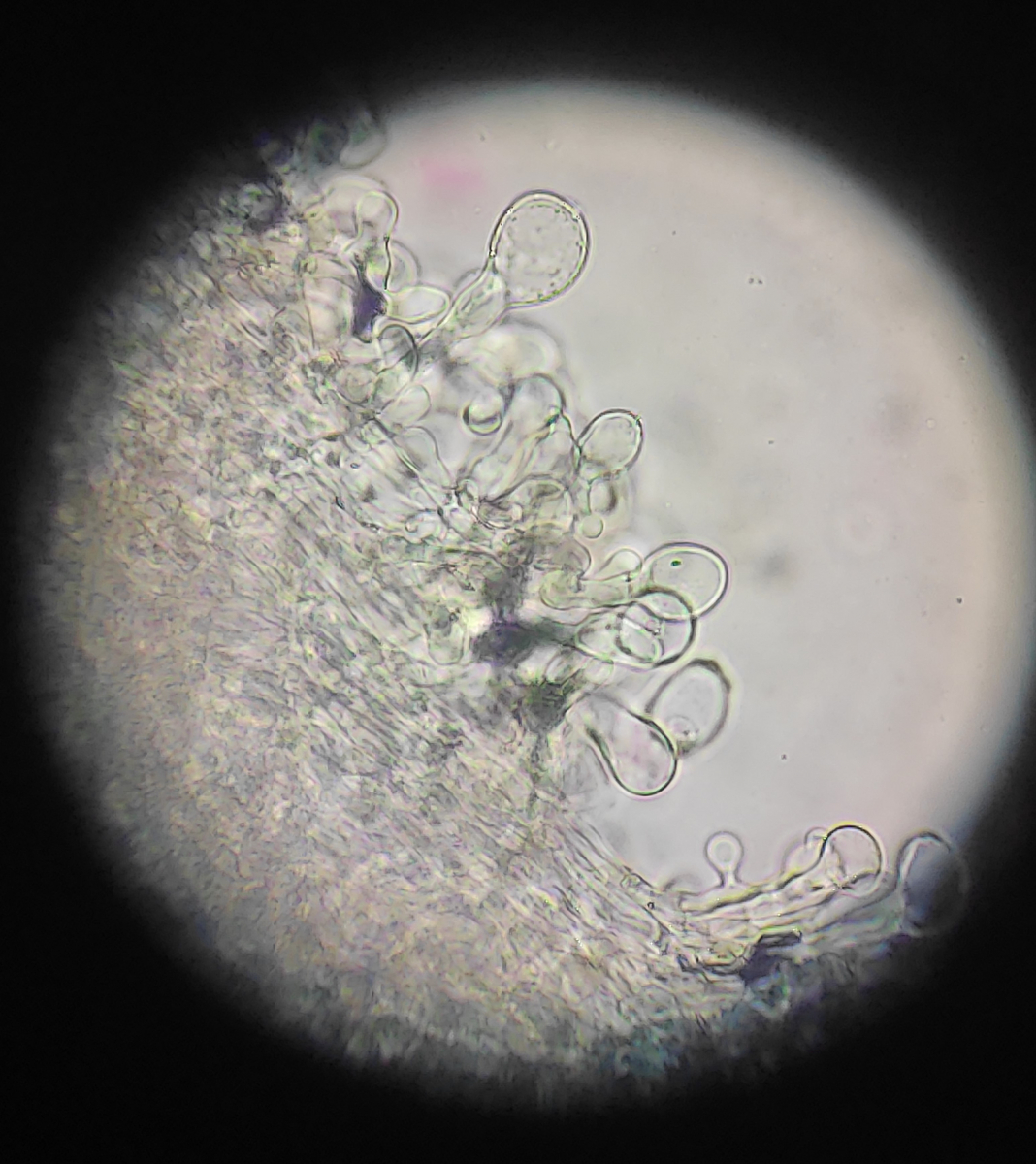 Ich habe (mit dem von gestern) 3 verschiedene mikroskopiert (hauptsächlich die Lamellenschneide), um zu sehen ob es Unterschiede gibt. Nun für mich nicht wirklich, obwohl gerade der zweite Pilz makroskopisch recht anders (viel) heller aussieht. Habe auch Bilder von Cheilozystiden der Waldfreundrüblinge im Netz gesucht, doch da fand ich vieles nicht so ganz eindeutig.