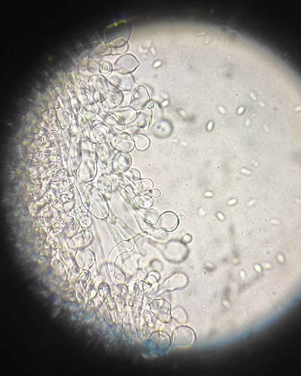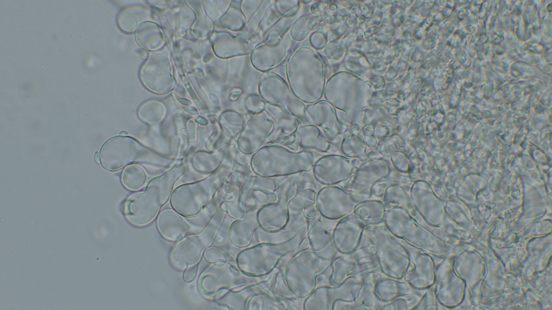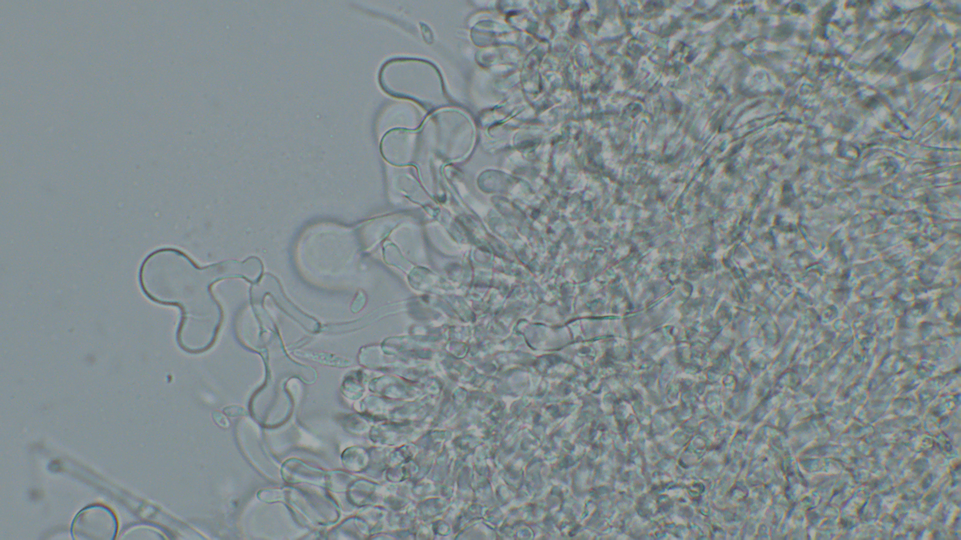 Ich habe (mit dem von gestern) 3 verschiedene mikroskopiert (hauptsächlich die Lamellenschneide), um zu sehen ob es Unterschiede gibt. Nun für mich nicht wirklich, obwohl gerade der zweite Pilz makroskopisch recht anders (viel) heller aussieht. Habe auch Bilder von Cheilozystiden der Waldfreundrüblinge im Netz gesucht, doch da fand ich vieles nicht so ganz eindeutig.