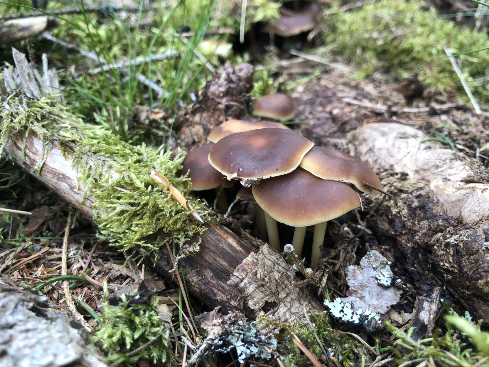 Heute bin ich nach der Arbeit in einer kurzen Regenpause in die Nähe meiner Joggingstrecke gefahren und habe weitere Waldfreundrüblinge gefunden.