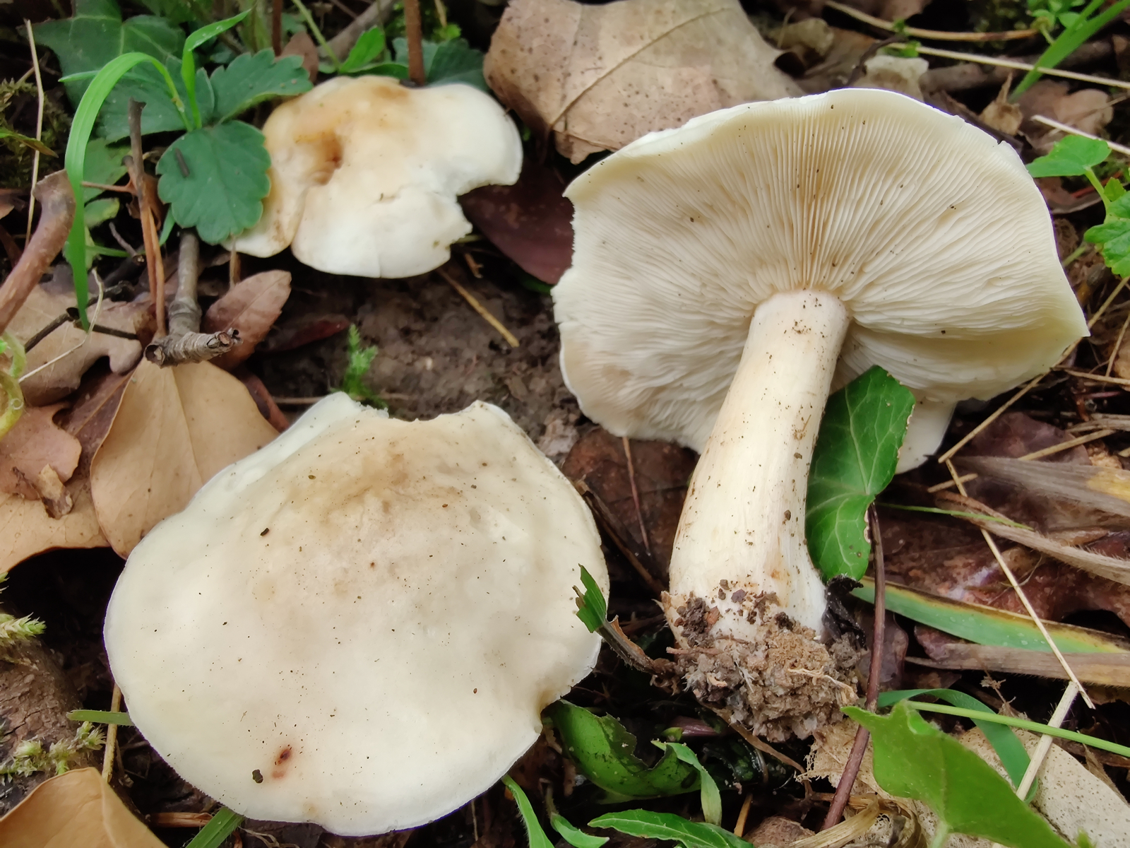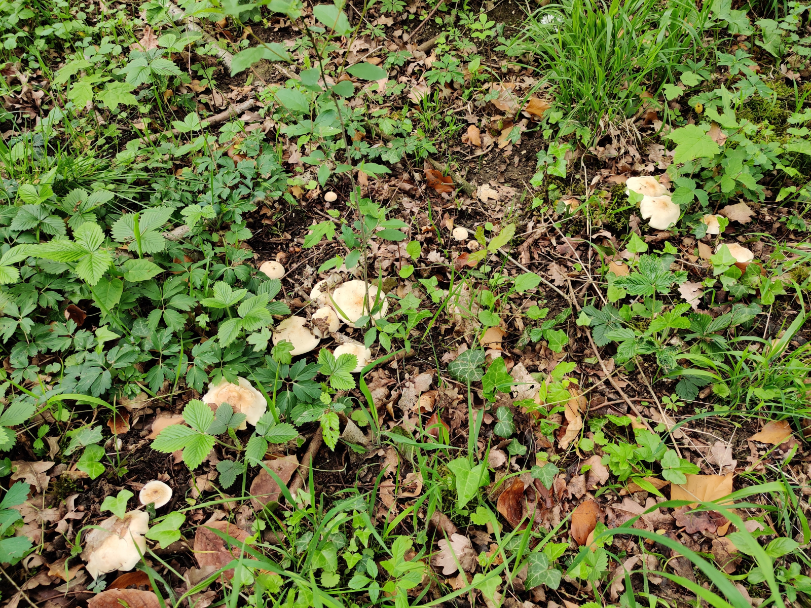 dieses Frühjahr habe ich mich das erste mal auch nach Maipilzen (Calocybe gambosa) umgeschaut und meine nun fündig geworden zu sein. In einem Auwald entdeckte ich am Wegesrand einige Früchtkörper. Ich überprüfte alle Merkmale und war mir ziemlich sicher, dass es sich um Maipilze handelt. Der Geruch war auf jeden Fall sehr prägnant und stark, auch wenn ich persönlich nicht ganz die "typischen" Gerüche nach Mehl und reifer Wassermelone wahrnehmen konnte. In die Richtung ging es aber schon irgendwie, meine ich jedenfalls. Die jungen Exemplare waren kugelig und fest, die älteren abgeflacht mit welligem Hutrand. Lamellen ausgebuchtet und dicht stehend.