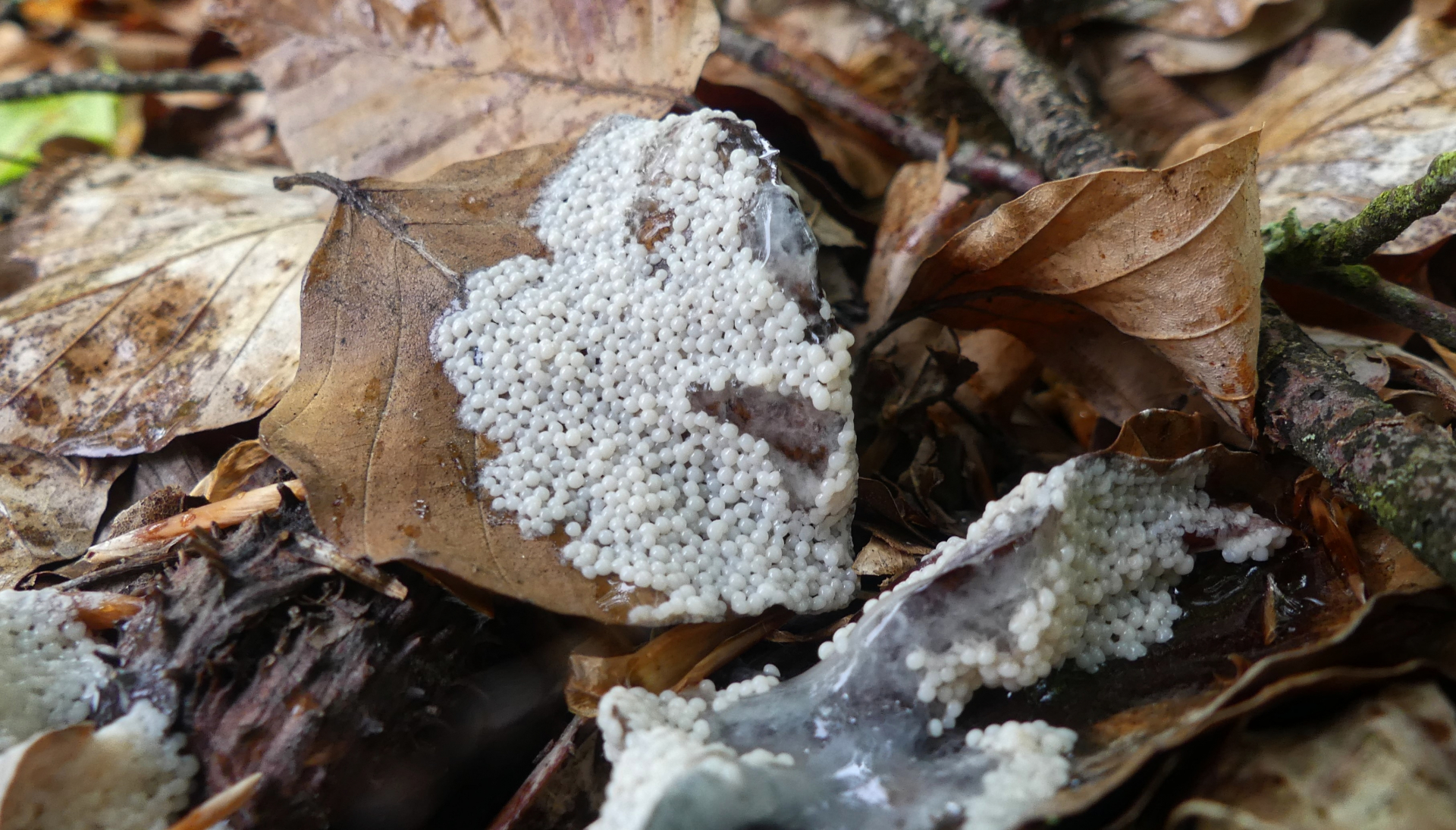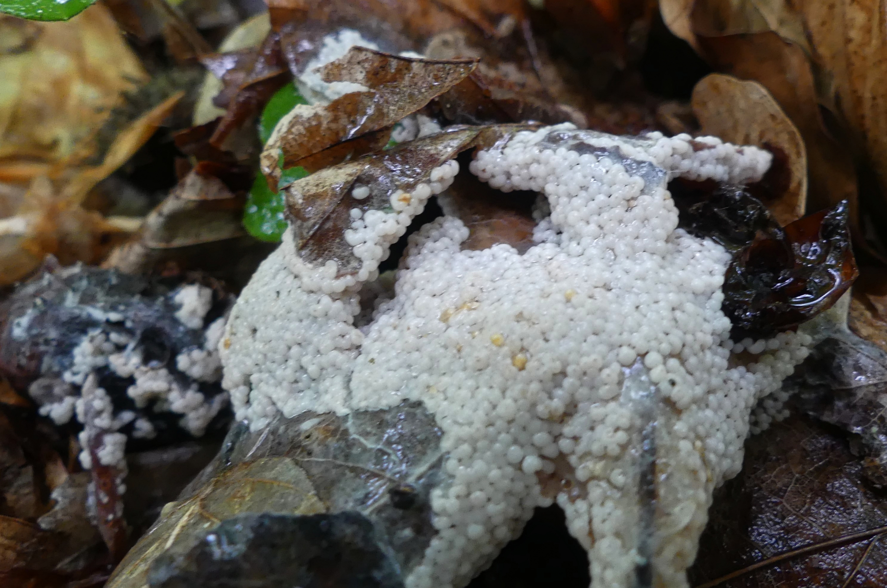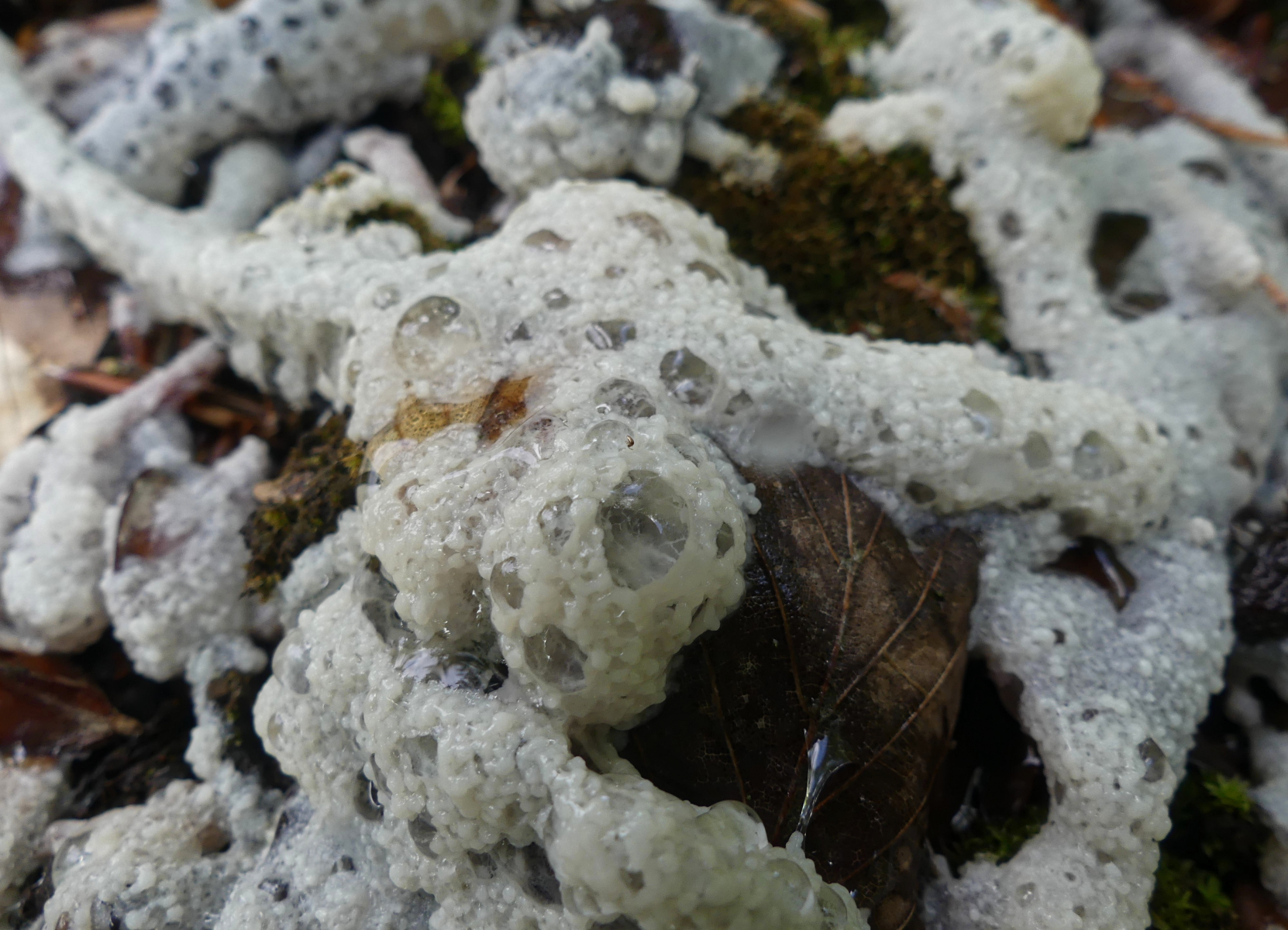 diese Schleimpilze bedeckten gestern immer wieder größere Flecken in einem Mischwald im Altmühltal. Ich war ehrlich gesagt richtig fasziniert, habe aber keine Ahnung was dies sein könnte.