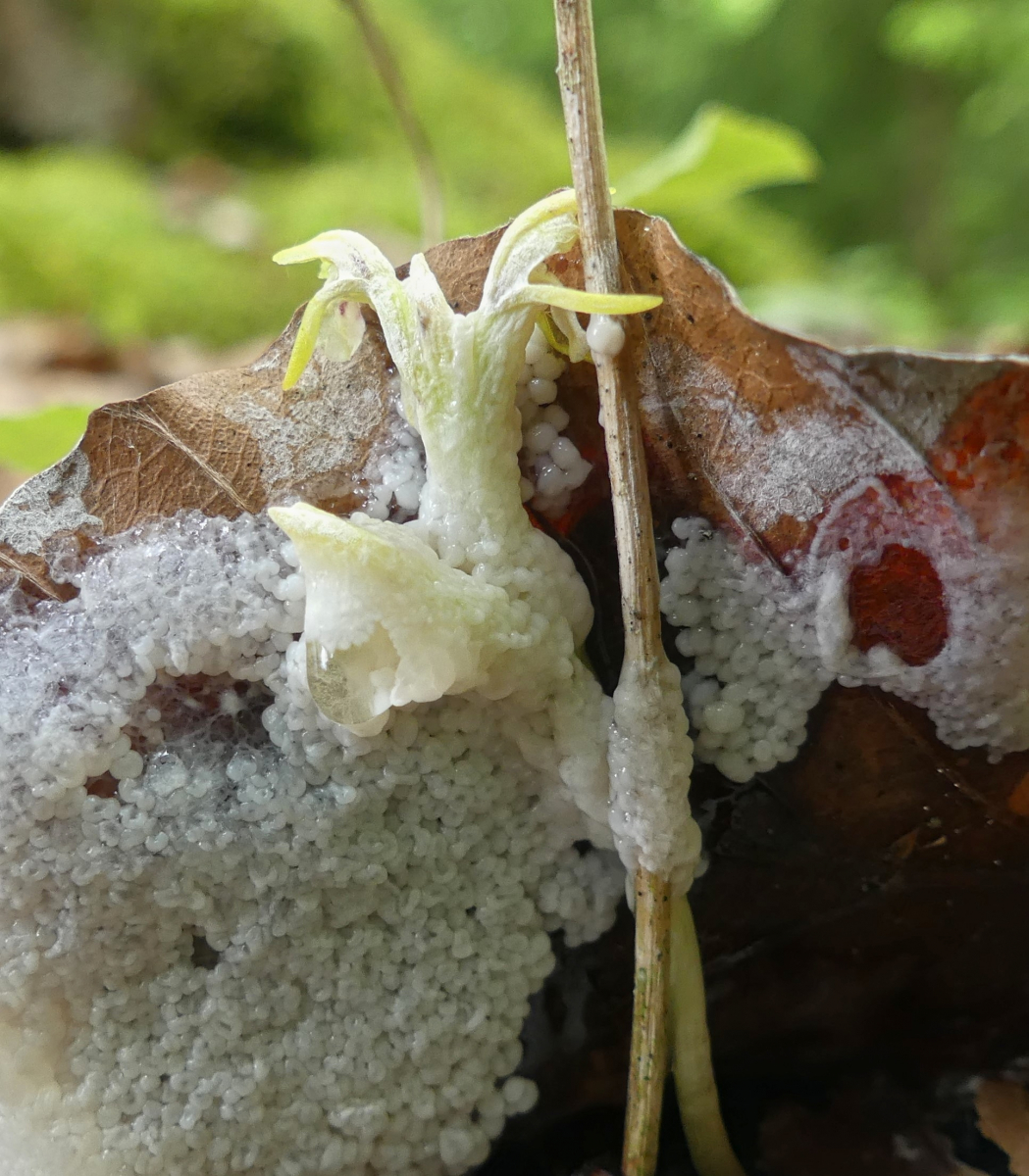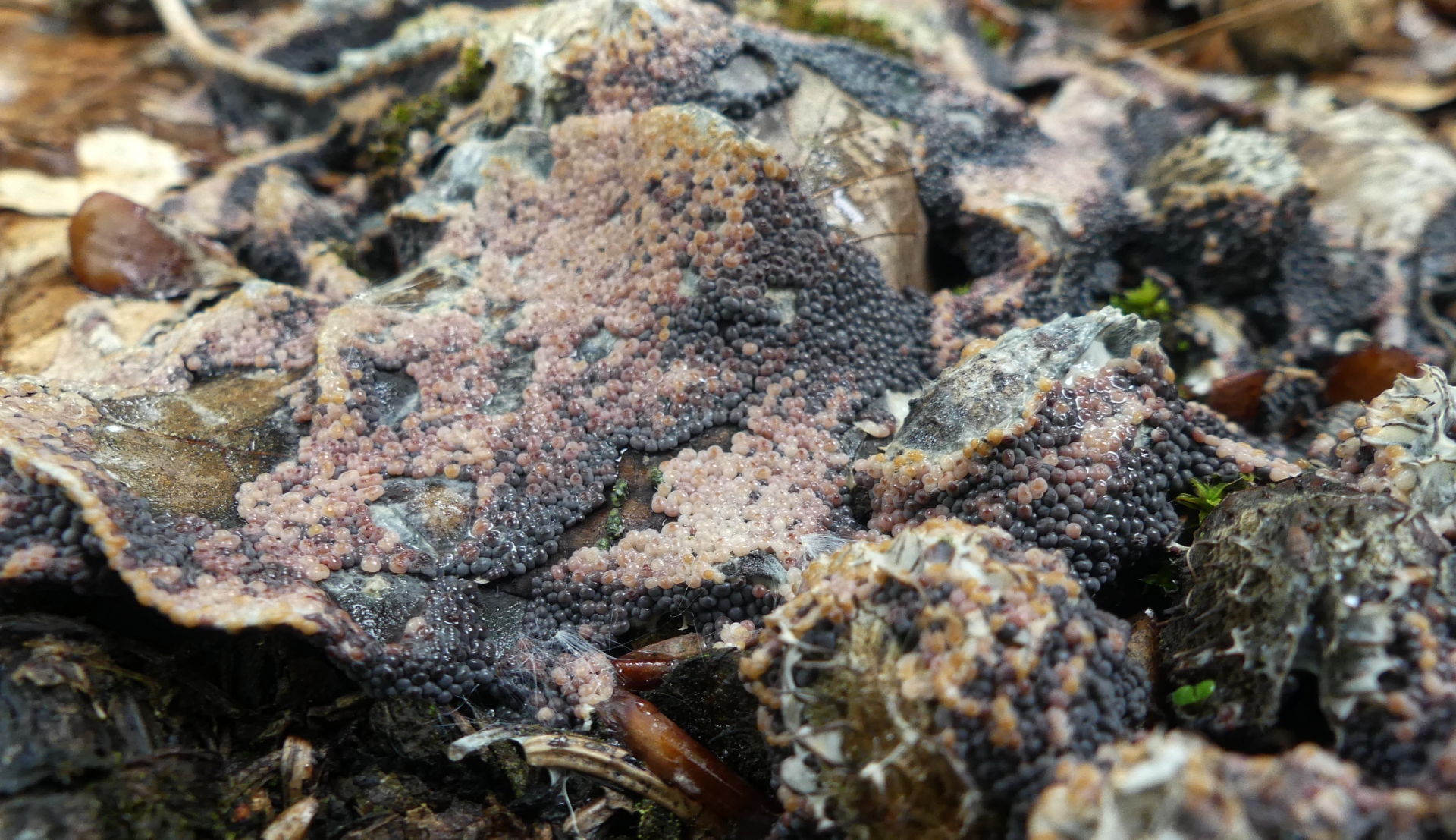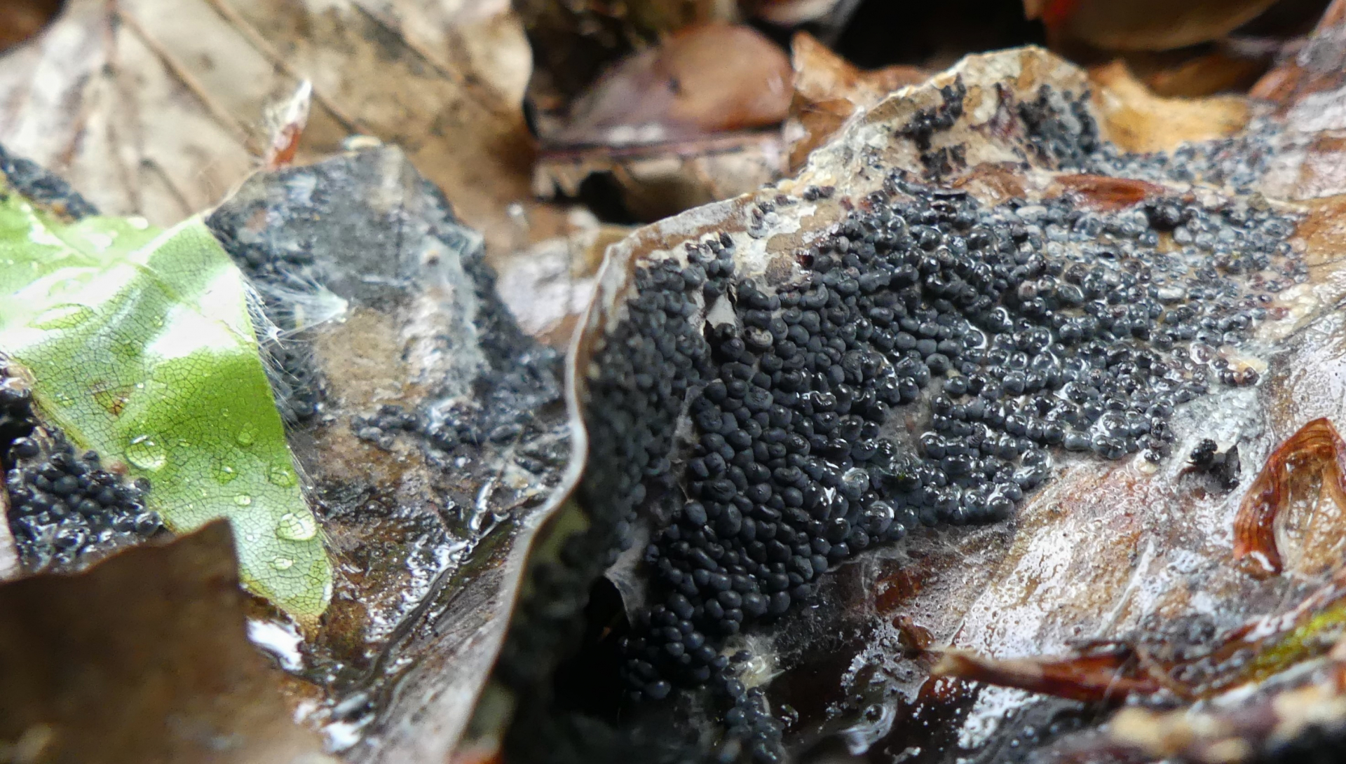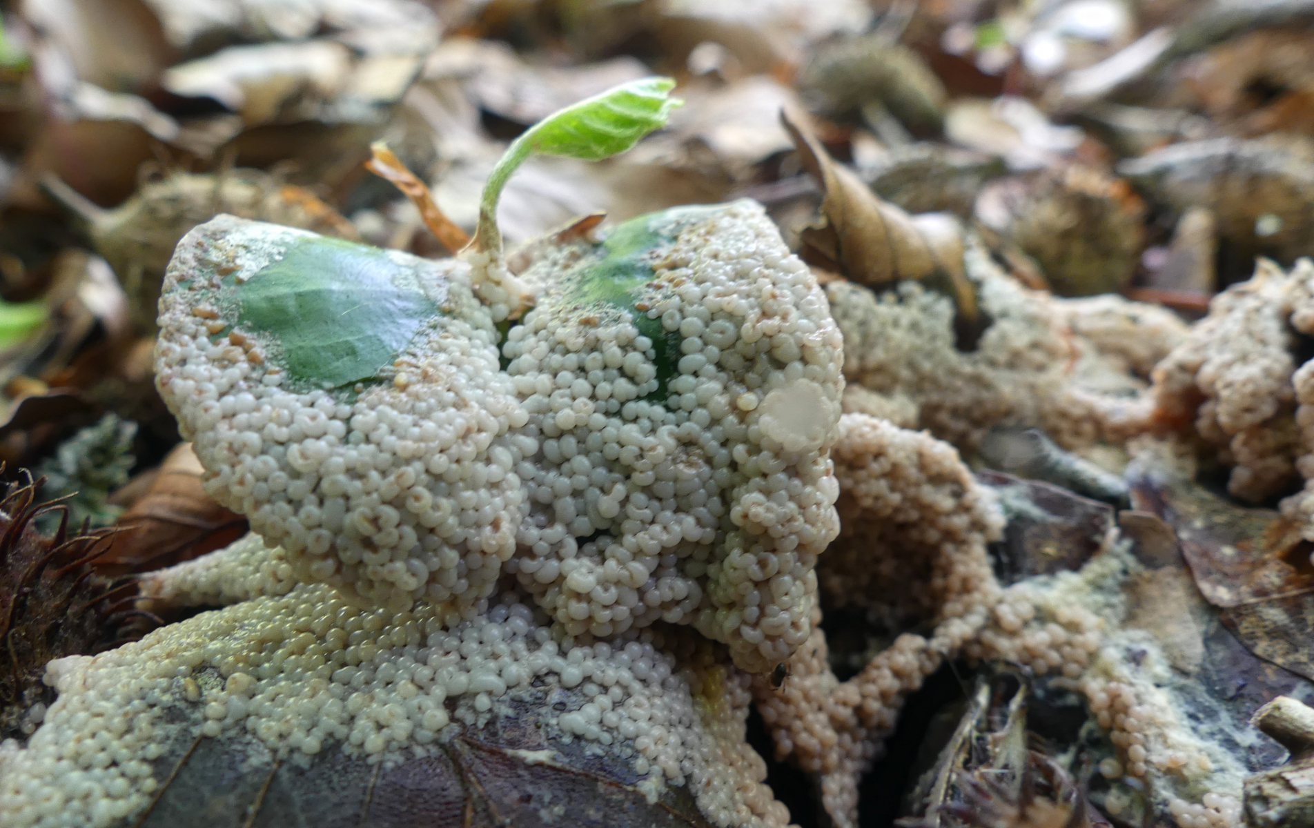 diese Schleimpilze bedeckten gestern immer wieder größere Flecken in einem Mischwald im Altmühltal. Ich war ehrlich gesagt richtig fasziniert, habe aber keine Ahnung was dies sein könnte.
