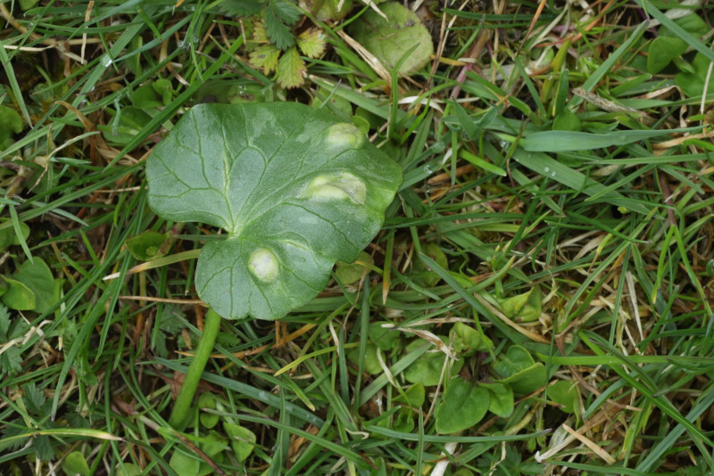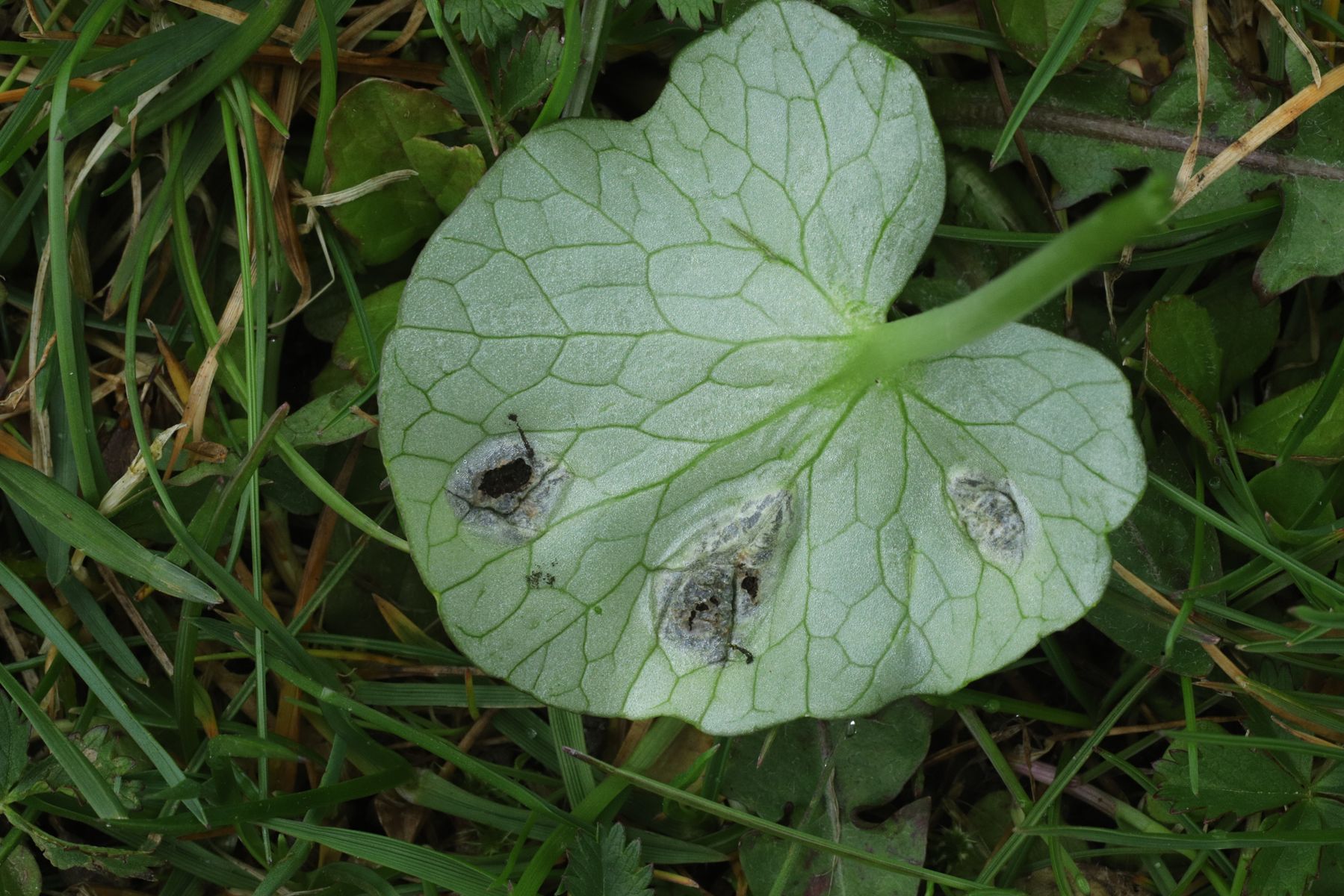 dann möchte ich dieses Portrait durch meinen Fund von heute ergänzen. Dieser Brandpilz wächst nämlich in meinem Garten. 2021 hat ihn Werner Edelmann entdeckt. Er war zu Besuch und hat sofort meinen Garten nach Phytos abgesucht. Heuer war er wieder an der gleichen Stelle – Scharbockskrautbestand neben meinem Komposthaufen. Ich habe das Blatt aber auf der Wiese fotografiert, da es unter den vielen Blättern im Bestand untergegangen wäre.
