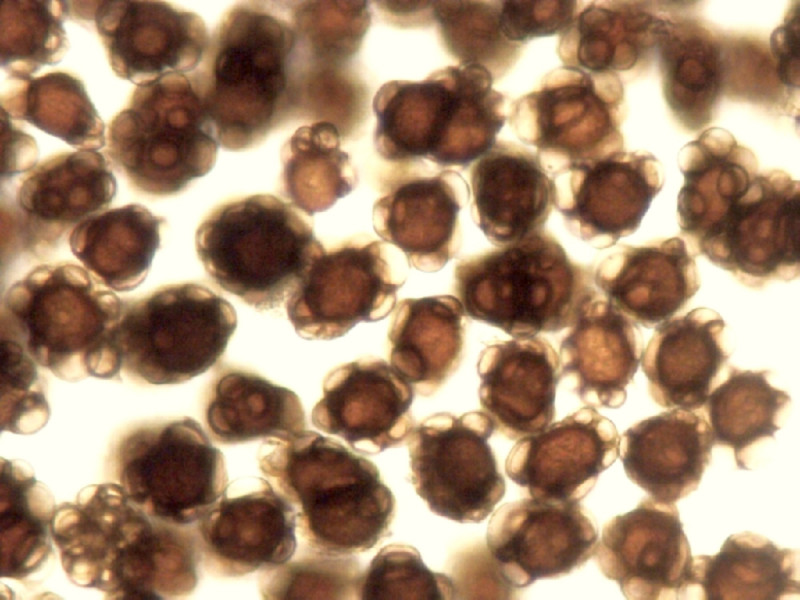 Ein, zwei bis drei Sporen, die von helleren Zellen umgeben sind. Einfach hübsch. Schön, sowas im Garten zu haben. Die Art soll ja eigentlich selten sein. Vielleicht wird sie auch übersehen. Hätte ich nicht gewusst, wo sie wächst, hätte ich sie nicht gesehen. Ich musste sie heute suchen, obwohl ich den genauen Wuchsort kenne, denn das befallene Blatt wurde von vielen gesunden einfach überwuchert und ich musste richtig wühlen. Karl W – hast du mittlerweile mehr Glück gehabt?